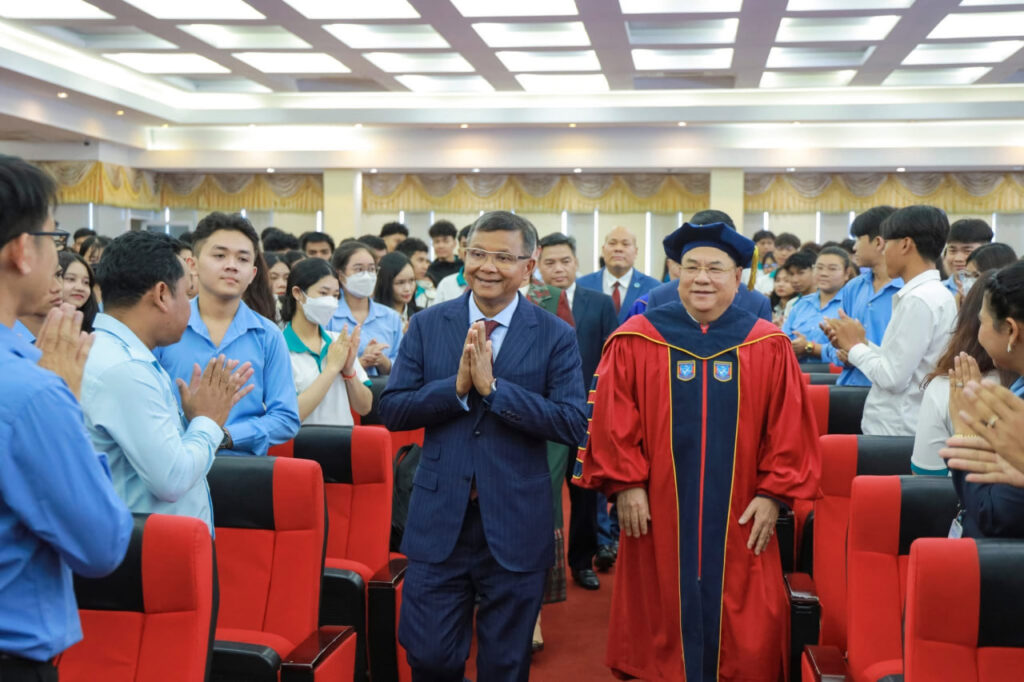 ឯកឧត្តមបណ្ឌិត លី ឆេង បានគោរពថ្លែងអំណរគុណយ៉ាងជ្រាលជ្រៅចំពោះវត្តមានដ៏ខ្ពង់ខ្ពស់របស់ ឯកឧត្តមបណ្ឌិតសភាចារ្យ ឧបនាយករដ្ឋមន្ត្រី ដែលបានផ្តល់កិត្តិយសដ៏ឧត្តុង្គឧត្តមអញ្ជើញជាប្រធានគណៈអធិបតីក្នុងកម្មវិធី “ការពារបញ្ចប់បរិមាធិប្បាយថ្នាក់បណ្ឌិត (Final Defense of PhD Dissertation)” របស់សាកលវិទ្យាល័យ