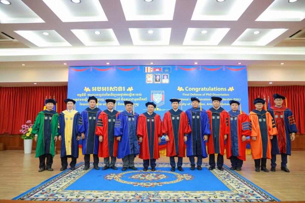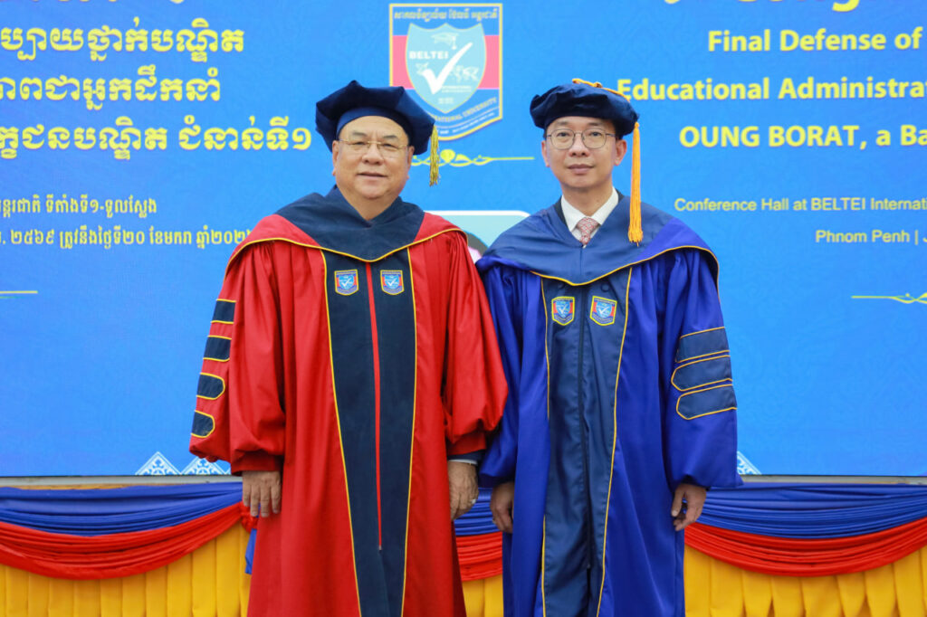 ឯកឧត្តមបណ្ឌិតសភាចារ្យ ហង់ជួន ណារ៉ុន និងឯកឧត្តបណ្ឌិត លី ឆេង បានអបអរសាទរ និងប្រកាសអំពីលទ្ធផលជាប់ជាផ្លូវការលើការវាយតម្លៃការការពារបញ្ចប់ថ្នាក់បណ្ឌិតរបស់បេក្ខជនបណ្ឌិត អ៊ុង បូរាត ព្រមទាំងបានបំពាក់ Graduation Gown ទទួលស្គាល់បណ្ឌិត ដែលបានជាប់ជាស្ថាពរចាប់ពីពេលនេះតទៅ។