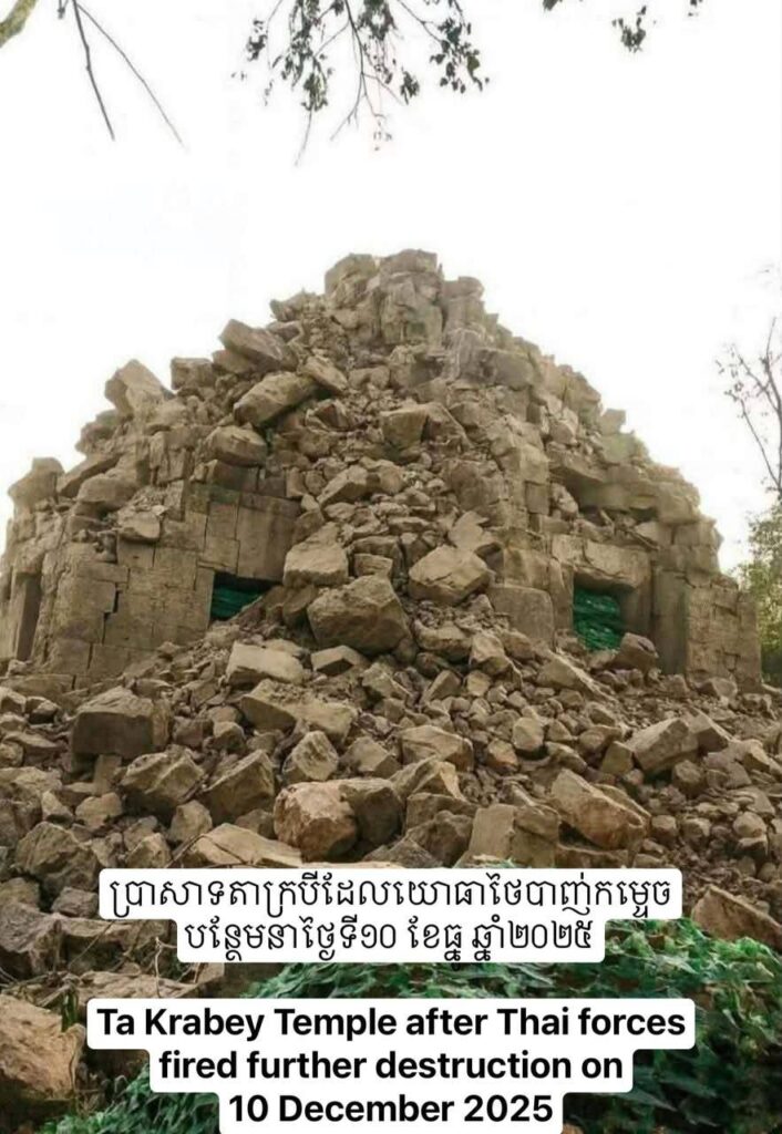 ក្រសួងវប្បធម៌និងវិចិត្រសិល្បៈ ស្នើភាគីថៃបញ្ឈប់សកម្មភាពបំផ្លិចបំផ្លាញ ក៏ដូចជាគម្រោងនានានៅជុំវិញ ប្រាសាទតាក្របី ដែលជាកម្មសិទ្ធិស្ថិតក្នុងដែនដីអធិបតេយ្យភាពកម្ពុជា និងងាកមករកការដោះស្រាយបញ្ហាព្រំដែន ដោយសន្តិវិធី និងគោរពទៅតាមសន្ធិសញ្ញាបារាំង-សៀម ឆ្នាំ១៩០៤ និង១៩០៧៕