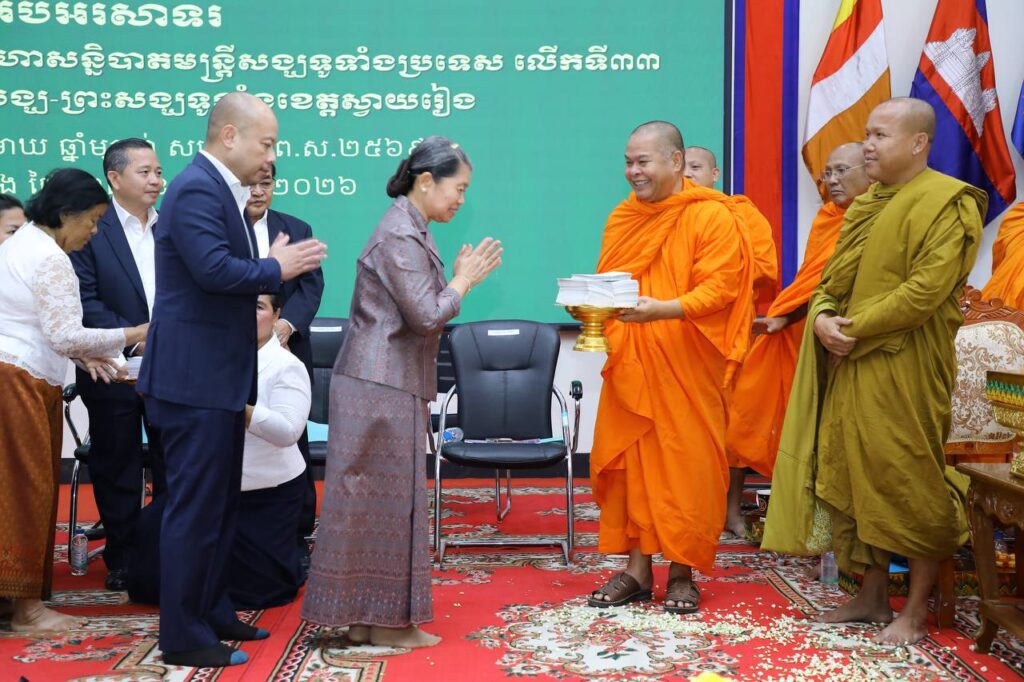 ខេត្តស្វាយរៀង៖ សម្តេចកិត្តិសង្គហបណ្ឌិត ម៉ែន សំអន ឧត្តមប្រឹក្សាផ្ទាល់ព្រះមហាក្សត្រ អ្នកតំណាងរាស្ត្រមណ្ឌលស្វាយរៀង និងជាប្រធានក្រុមប្រឹក្សាជាតិរណសិរ្សសាមគ្គី អភិវឌ្ឍន៍មាតុភូមិកម្ពុជា បានអញ្ជើញជាអធិបតី ក្នុងពិធីប្រកាសផ្សព្វផ្សាយខ្លឹមសារអនុសំវច្ឆរមហាសន្និបាតមន្រ្តីសង្ឃទូទាំងប្រទេសលើកទី៣៣ នៅសាលាខេត្តស្វាយរៀង នារសៀលថ្ងៃសុក ៥កើត ខែមាឃ ឆ្នាំម្សាញ់ សប្តស័ក ព.ស.២៥៦៩ ត្រូវនឹងថ្ងៃទី២៣ ខែមករា ឆ្នាំ២០២៦។