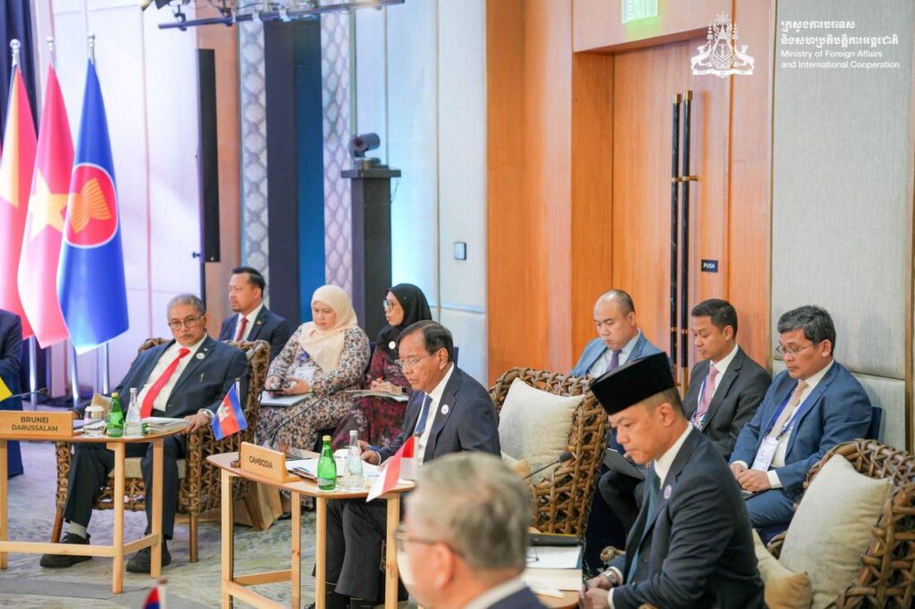 កិច្ចប្រជុំនេះក៏បានពិភាក្សាបន្តអំពីវឌ្ឍភាពសម្រេចបានក្រោយពីកិច្ចប្រជុំពិសេសរដ្ឋមន្ត្រីការបរទេសអាស៊ាន ស្តីពីស្ថានភាពបច្ចុប្បន្នរវាងកម្ពុជា និងថៃ ដែលបានប្រព្រឹត្តទៅកាលពីថ្ងៃទី២២ ខែធ្នូ ឆ្នាំ២០២៥ នៅទីក្រុងគូឡាឡាំពួ ប្រទេសម៉ាឡេស៊ី។ កម្ពុជាបានបញ្ជាក់សារជាថ្មីពីការប្តេជ្ញាចិត្តយ៉ាងមុតមាំក្នុងការដោះស្រាយបញ្ហានានាដោយសន្តិវិធី ស្របតាមច្បាប់អន្តរជាតិ សន្ធិសញ្ញា និងកិច្ចព្រមព្រៀង ដែលមានស្រាប់ ដើម្បីធានានូវសន្តិភាព និងស្ថិរភាពក្នុងតំបន់។