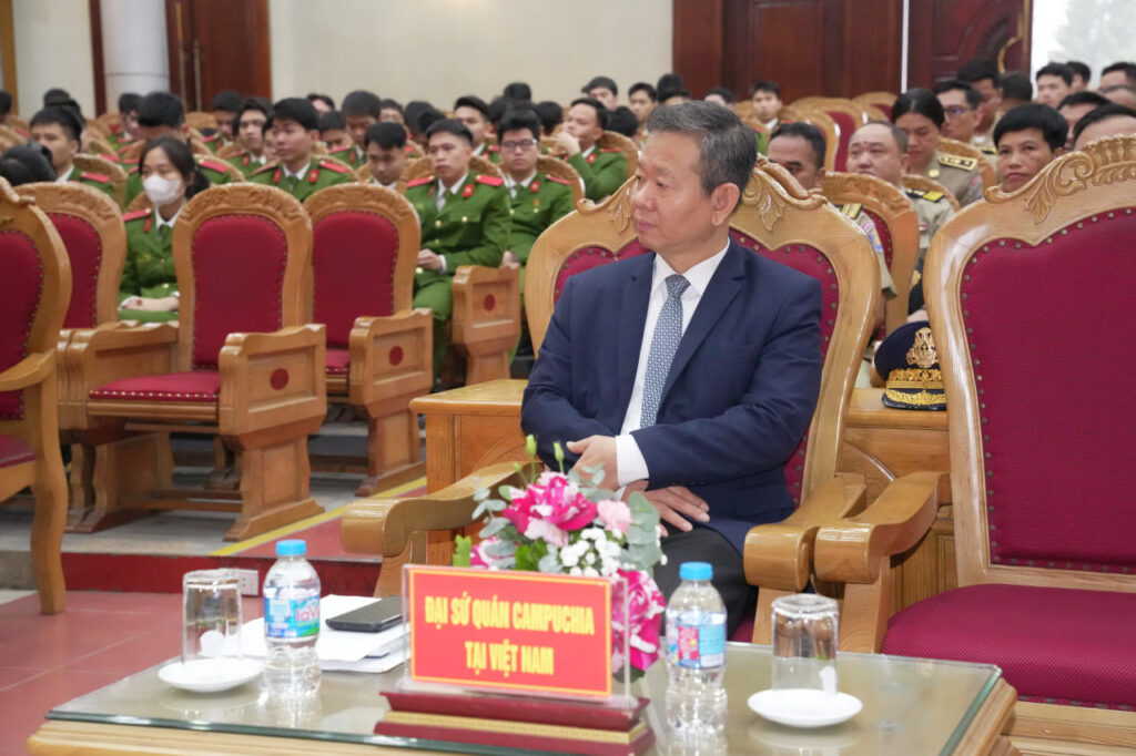 ពិធីនេះមានការអញ្ជើញចូលរួមជាគណៈអធិបតីពី លោកព្រឹទ្ធបុរស បណ្ឌិត សាស្រ្តចារ្យឆ្នើម ជិន មិញហឿង នាយកសាលាបណ្ឌិត្យសភាតម្រួតប្រជាជន ព្រមជាមួយថ្នាក់ដឹកនាំនៃសាលាបណ្ឌិត្យសភាតម្រួតប្រជាជន តំណាងស្ថានទូតនៃព្រះរាជាណាចក្រកម្ពុជា ប្រចាំនៅរដ្ឋធានីហាណូយ និងនាយនគរបាលជាន់ខ្ពស់កម្ពុជា ជាសិក្ខាកាមចំនួន ៦០រូប ផងដែរ។