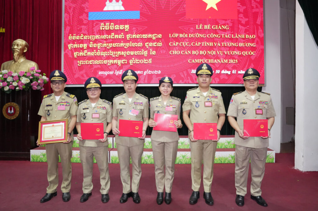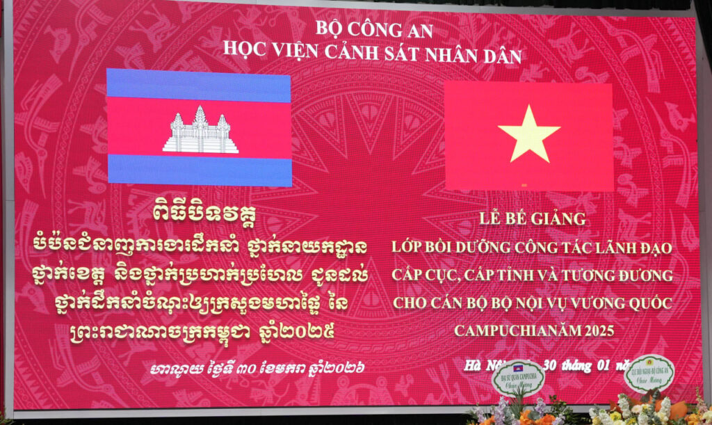 នាព្រឹកថ្ងៃទី៣០ ខែមករា ឆ្នាំ២០២៦ ពិធីបិទវគ្គបំប៉នជំនាញការងារដឹកនាំ សម្រាប់ថ្នាក់ដឹកនាំនាយកដ្ឋាន និងថ្នាក់ដឹកនាំស្នងការដ្ឋានខេត្ត និងថ្នាក់ប្រហាក់ប្រហែល បានប្រព្រឹត្តទៅនៅបណ្ឌិត្យសភាតម្រួតប្រជាជនវៀតណាមភាគខាងជើង នៃសាធារណៈរដ្ឋសង្គមនិយមវៀតណាម។
