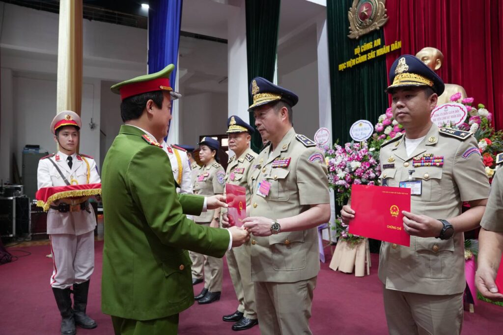 លោកឧត្តមសេនីយ៍ត្រី គុចជូ ច័ន្ទបូណាក់ អនុប្រធានសេនាធិការដ្ឋាន នៃអគ្គស្នងការដ្ឋាននគរបាលជាតិកម្ពុជា និងជាប្រធានវគ្គសិក្សា បានថ្លែងអំណរគុណយ៉ាងជ្រាលជ្រៅដល់ថ្នាក់ដឹកនាំសាលាបណ្ឌិត្យសភាតម្រួតប្រជាជនវៀតណាមភាគខាងជើង និងថ្នាក់ដឹកនាំនៃក្រសួងនគរបាលវៀតណាម ដែលបានឧបត្ថម្ភគាំទ្រ និងធ្វើកិច្ចសហការយ៉ាងល្អជាមួយថ្នាក់ដឹកនាំក្រសួងមហាផ្ទៃ នៃព្រះរាជាណាចក្រកម្ពុជា ក្នុងការរៀបចំឱ្យមានវគ្គបំប៉នជំនាញនេះឡើង។