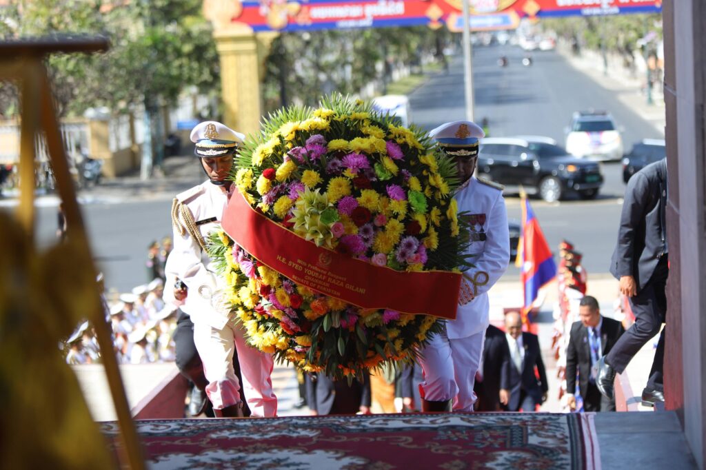 មុនអញ្ជើញជួបទ្វេភាគីជាមួយសម្តេចតេជោ ហ៊ុន សែន , ឯកឧត្តម ប្រធានព្រឹទ្ធសភា និងគណៈប្រតិភូអ៊ីស្លាមប៉ាគីស្ថាន បានអញ្ជើញដាក់កម្រងផ្កាគោរពវិញ្ញាណក្ខន្ធ នៅវិមានឯករាជ្យ និងអញ្ជើញដាក់កម្រងផ្កាគោរពព្រះវិញ្ញាណក្ខន្ធ ព្រះបរមរតនកោដ្ឋ នៅមណ្ឌបព្រះបរមរូប ។