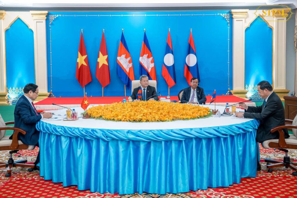 សម្តេចមហាបវរធិបតី ហ៊ុន ម៉ាណែត នាយករដ្ឋមន្រ្តី នៃព្រះរាជាណាចក្រកម្ពុជា បានអញ្ជើញដឹកនាំកិច្ចប្រជុំនាយករដ្ឋមន្ត្រីបីប្រទេស (កម្ពុជា-ឡាវ-វៀតណាម) ដោយមានការចូលរួមពី ឯកឧត្តម ផាម មិញជិញ នាយករដ្ឋមន្ត្រី នៃសាធារណរដ្ឋសង្គមនិយមវៀតណាម និងឯកឧត្តម សនសៃ ស៊ីផាន់ដន នាយករដ្ឋមន្ត្រី នៃសាធារណរដ្ឋប្រជាធិបតេយ្យប្រជាមានិតឡាវ នៅវិមានសាមគ្គីភាព នារសៀលថ្ងៃទី៦ ខែកុម្ភៈ ឆ្នាំ២០២៦, ក្នុងឱកាសដែលឯកឧត្តមនាយករដ្ឋមន្ត្រីវៀតណាម និងឯកឧត្តមនាយករដ្ឋមន្ត្រីឡាវ បានចូលរួមកិច្ចប្រជុំរវាងថ្នាក់ដឹកនាំគណបក្សប្រជាជនកម្ពុជា, ថ្នាក់ដឹកនាំគណបក្សកុម្មុយនីស្តវៀតណាម និងថ្នាក់ដឹកនាំគណបក្សប្រជាជនបដិវត្តន៍ឡាវ នៅរាជធានីភ្នំពេញ ព្រះរាជាណាចក្រកម្ពុជា ពីថ្ងៃទី៦ដល់ថ្ងៃទី៧ ខែកុម្ភៈ ឆ្នាំ២០២៦។