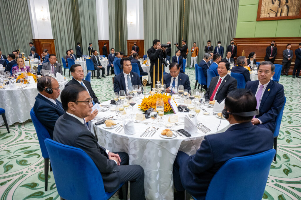 ក្នុងពិធីដ៏មហោឡារឹកសម្តេចអគ្គមហាសេនាបតីតេជោ ហ៊ុន សែន ឯកឧត្តម បណ្ឌិត ថងលុន ស៊ីសូលីត និងគណៈប្រតិភូជាន់ខ្ពស់កម្ពុជា-ឡាវ អញ្ជើញទទួលទានភោជនាហារ អមដោយទស្សនីយភាពសិល្បៈក្រោមបរិយាកាសដ៏រីករាយ និងស្និទ្ធស្នាល ៕