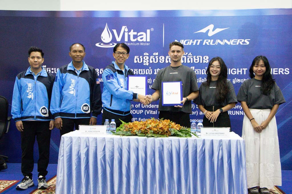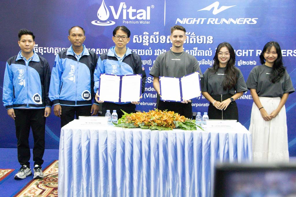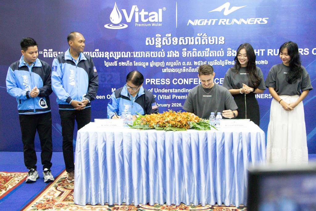 ភ្នំពេញ៖ វីតាល់ បានចុះហត្ថលេខាលើអនុស្សរណៈយោគយល់ (MOU) ជាមួយ Night Runners Club ដើម្បីបង្កើនកិច្ចសហការលើការលើកកម្ពស់សុខភាព សុខុមាលភាព និងរបៀបរស់នៅសកម្មរបស់ប្រជាជនកម្ពុជា តាមរយៈសកម្មភាពរត់ជាសហគមន៍។ ពិធីនេះបានប្រព្រឹត្តទៅនៅថ្ងៃទី២៨ ខែកុម្ភៈ ឆ្នាំ២០២៦ នៅរោងចក្រទឹកពិសាវីតាល់ ដោយមានការចូលរួមពី លោក ហុង សុវណ្ណ ប្រធានធុរកិច្ច នៃក្រុមហ៊ុន វ័ន ម៉រ គ្រុប (វីតាល់) លោក BERTRAND LUCAS