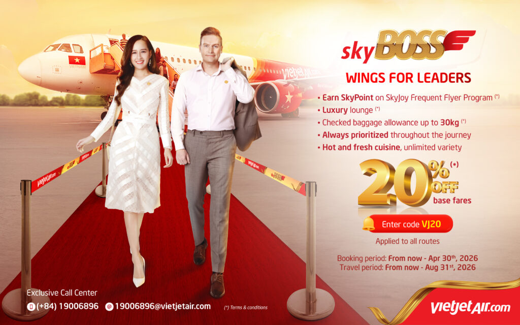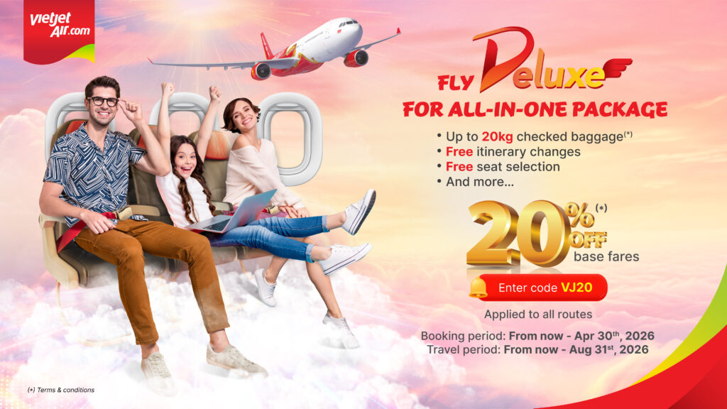 ភ្នំពេញ ថ្ងៃទី១៤ ខែមេសា ឆ្នាំ២០២៦ – មុនពេលថ្ងៃឈប់សម្រាកសំខាន់ៗជាច្រើនរបស់ប្រទេសវៀតណាមមកដល់ ក្រុមហ៊ុនអាកាសចរណ៍ Vietjet កំពុងផ្តល់ជូនការបញ្ចុះតម្លៃសំបុត្ររហូតដល់ ២០% លើតម្លៃសំបុត្រ (មិនរាប់បញ្ចូលពន្ធ និងថ្លៃសេវា) សម្រាប់អ្នកធ្វើដំណើរមកពីប្រទេសកម្ពុជា ដែលកក់សំបុត្រយន្តហោះ SkyBoss និង Deluxe នៅទូទាំងបណ្តាញជើងហោះហើររបស់ខ្លួន រួមទាំងផ្លូវហោះហើរសៀមរាប-ហាណូយផងដែរ។