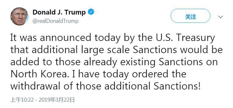 សហរដ្ឋអាម៉េរិក៖ តាមរយៈបណ្តាញសង្គមធ្វីតធើផ្លូវការរបស់ខ្លួន ប្រធានាធិបតីអាម៉េរិកលោក ដូណាល់ ត្រាំ នៅថ្ងៃសុក្រសប្តាហ៍នេះ បានចេញបញ្ជាឲ្យលុបចោលកញ្ចប់ទណ្ឌកម្មថ្មី ដែលក្រសួងរតនាគារជាតិអាម៉េរិកទើបប្រកាសដាក់បន្ថែមទៅលើកូរ៉េខាងជើង។