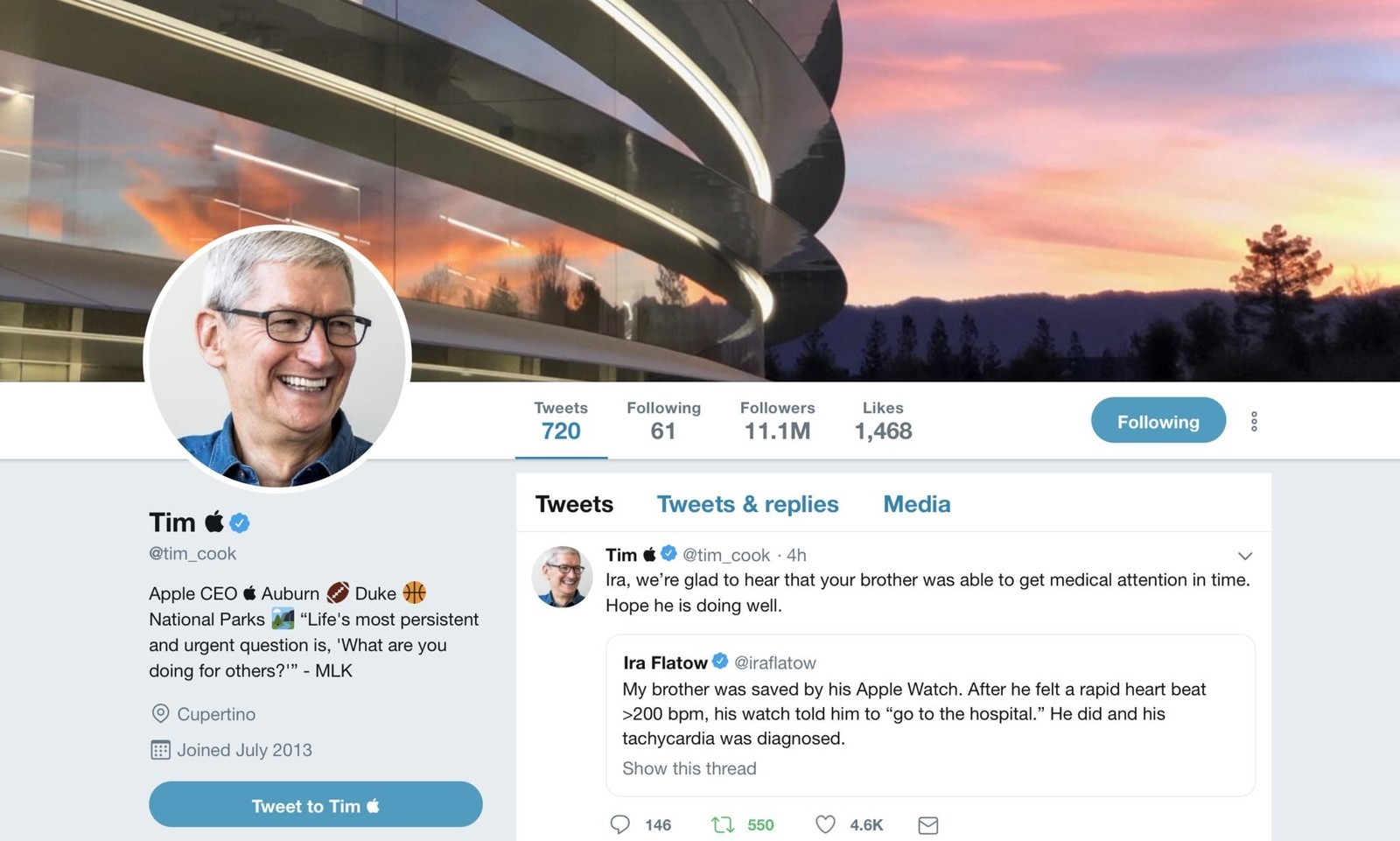 នៅថ្ងៃបន្ទាប់ Tim Cook បានសម្រេចចិត្តប្តូរឈ្មោះតាមការចង់បានរបស់លោកត្រាំ។ នាយកប្រតិបត្តិក្រុមហ៊ុន Apple ក៏បានប្ដូរឈ្មោះលើគណនី Twitter របស់ខ្លួន ដោយប្ដូរពី Tim Cook ទៅជា Tim ដោយសញ្ញាផ្លែប៉ោមនៅពីក្រោយតំណាងឲ្យ “Tim Apple” ដូចការហៅរបស់លោក ដូណាល់ ត្រាំ។