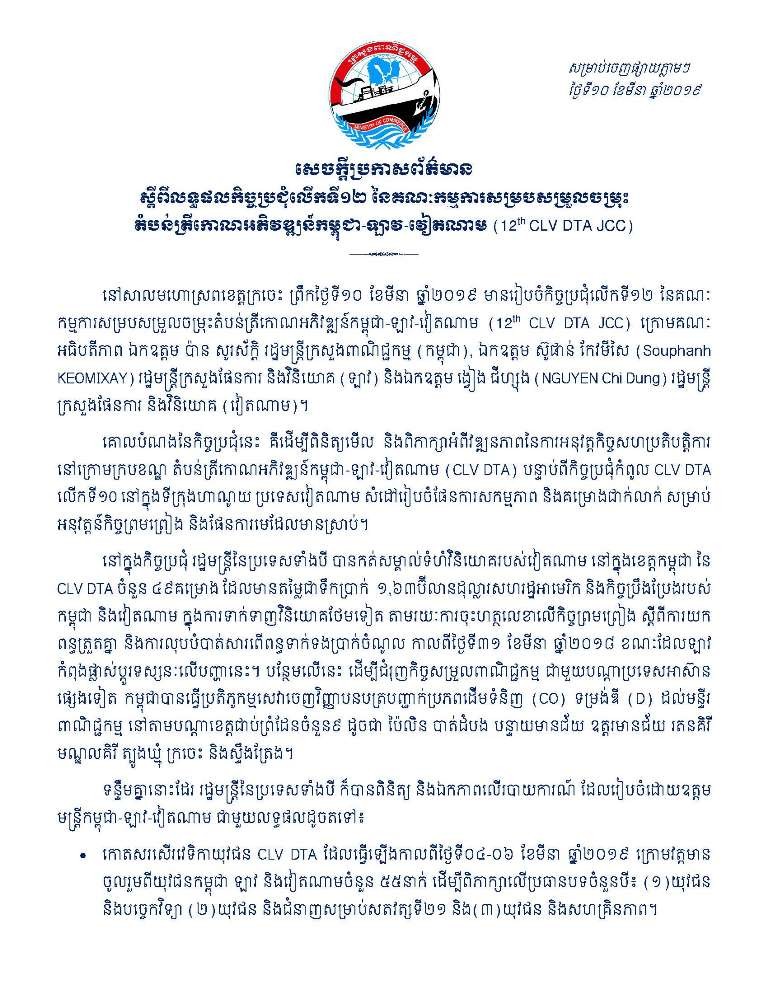 សេចក្តីប្រកាសព័ត៌មានស្តីពីលទ្ធផលកិច្ចប្រជុំលើកទី១២ នៃគណៈកម្មការសម្របសម្រួលចម្រុះតំបន់ត្រីកោណអភិវឌ្ឍន៍កម្ពុជា-ឡាវ-វៀតណាមព័ត៌មានអត្ថបទដោយ៖Kien Sereyvuth Kien SereyvuthIT Technical Supportអត្ថបទមុនអត្ថបទបន្ទាប់