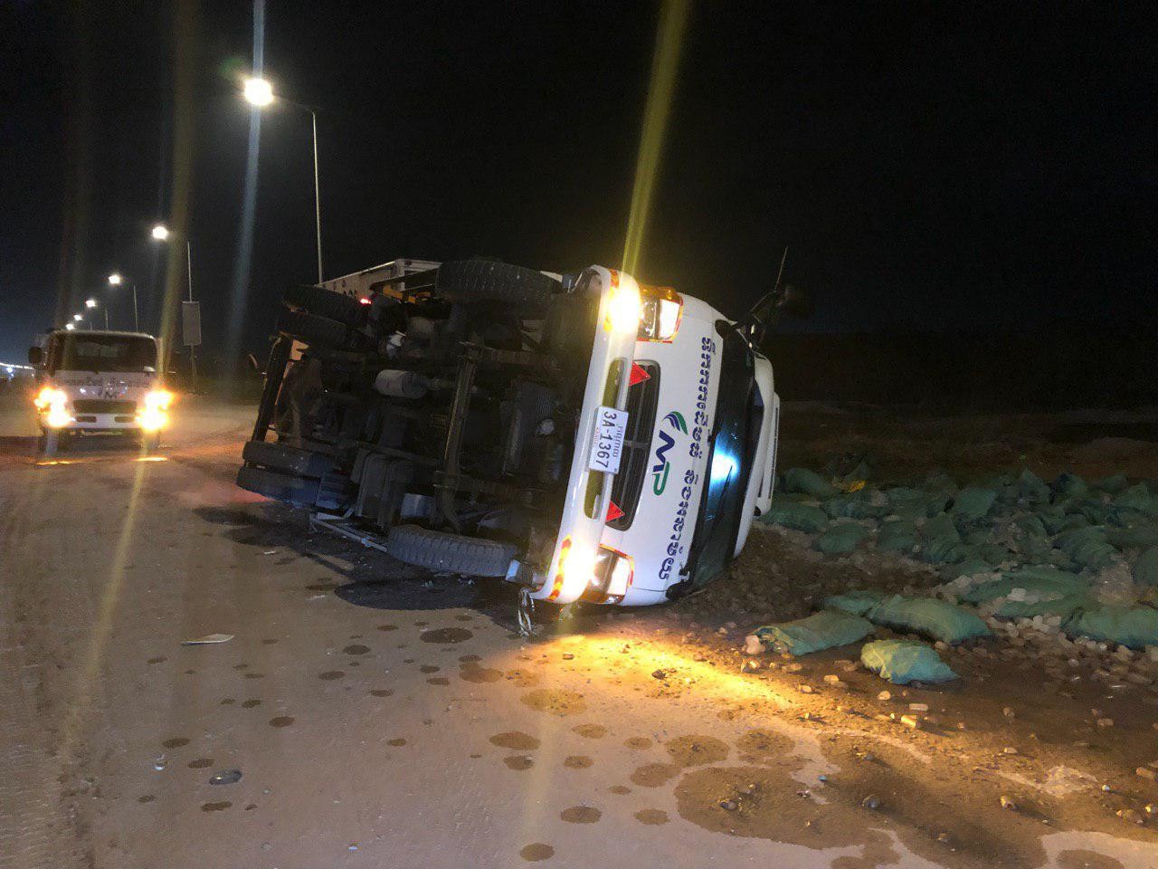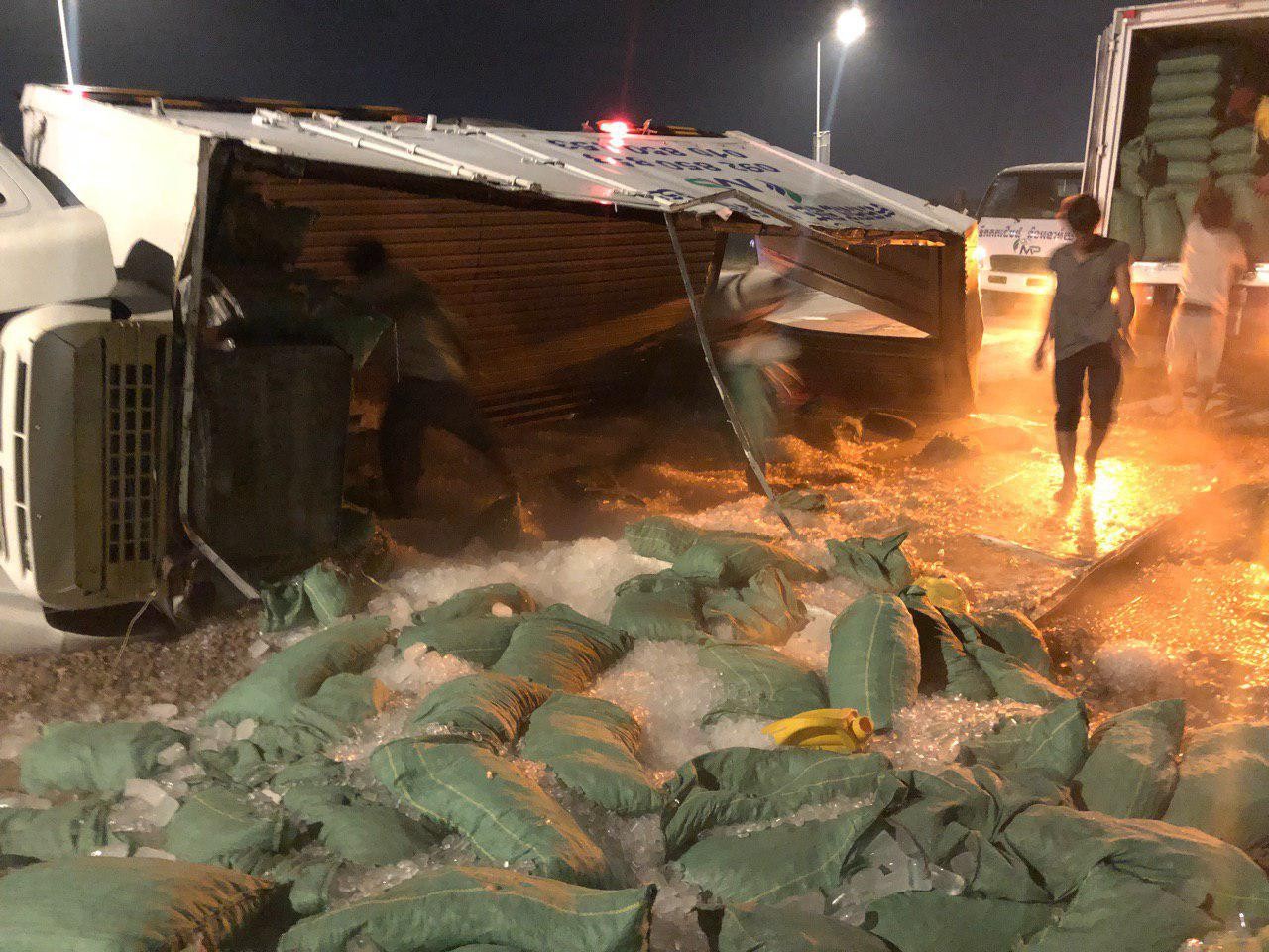 រថយន្តដឹកទឹកកកអនាម័យមួយគ្រឿងបានក្រឡាប់នៅផ្លូវ៦០ម៉ែត្រ
