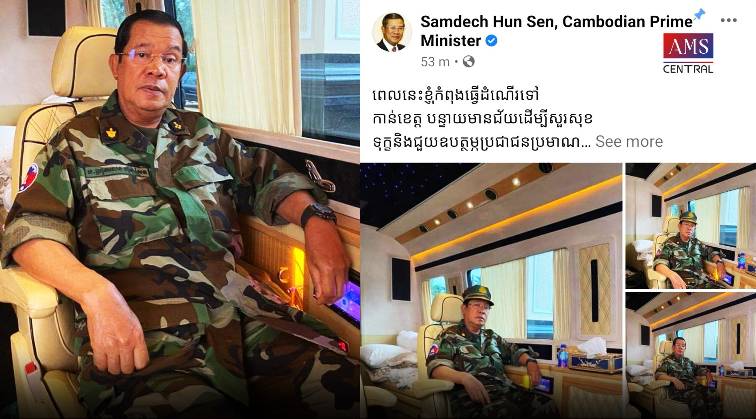 សម្ដេចតេជោ ហ៊ុន សែន កំពុងធ្វើដំណើរទៅកាន់ខេត្តបន្ទាយមានជ័យ ដើម្បីសួរសុខទុក្ខ និងជួយឧបត្ថម្ភប្រជាជនប្រមាណ២មុឺនគ្រួសារ ដែលរងគ្រោះដោយជំនន់ទឹកភ្លៀង