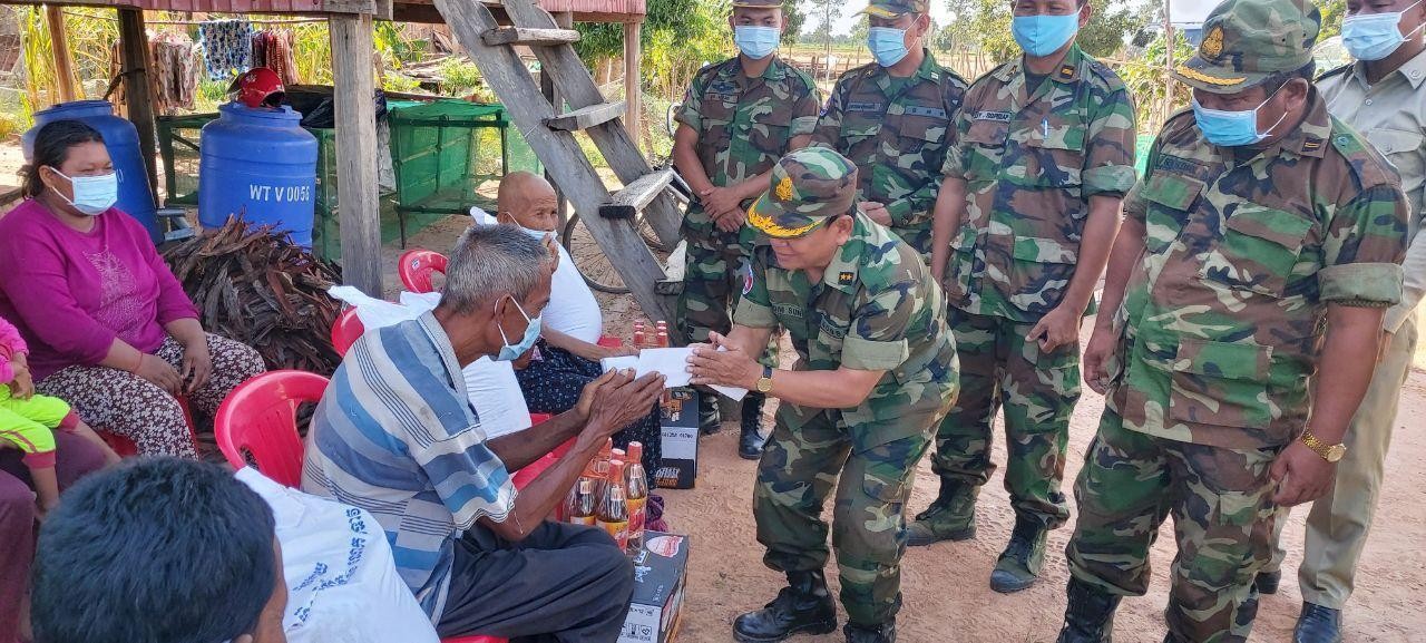 កំពង់ធំ៖ ឯកឧត្តមឧត្តមសេនីយ៍ទោ សោម ស៊ុន មេបញ្ជាការតំបន់ប្រតិបត្តិការសឹករងកំពង់ធំ បានដឹកនាំសហការី រួមជាមួយអាជ្ញាធរដែនមូលដ្ឋាន នាំយកនូវអំណោយរបស់ឯកឧត្តមឧត្តមសេនីយ៍ឯក ហ៊ុន ម៉ាណែត អគ្គមេបញ្ជាការរង និងជាមេបញ្ជាការកងទ័ពជើងគោក ផ្តល់ជូនប្រជាពលរដ្ឋទីទ័លក្រចំនួន ០៦គ្រួសារ រស់នៅ២ភូមិ ក្នុងនោះគឺភូមិក្របៅចំនួន ០៤គ្រួសារ និងនៅភូមិតាមុំ ចំនួន០២គ្រួសារ ស្ថិតនៅក្នុងឃុំដូង ស្រុកប្រាសាទបល្ល័ង្ក ខេត្តកំពង់ធំ។