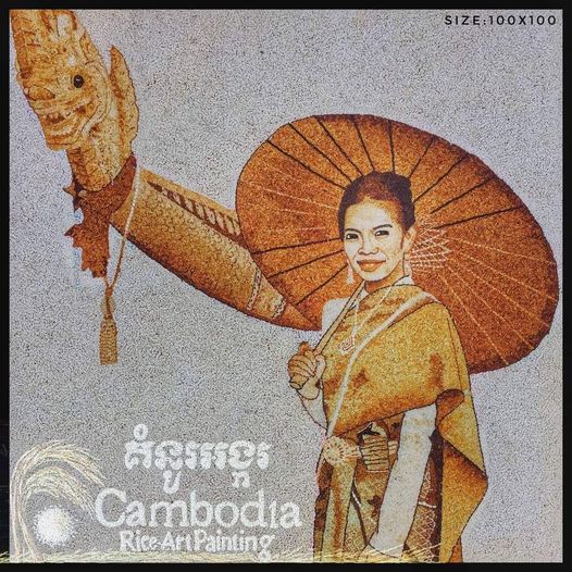 ស្ត្រីខ្មែរឥស្លាមម្នាក់ មានគំនិតច្នៃប្រឌិត បានយកគ្រាប់អង្ករមកផ្គុំឡើងដោយដៃយ៉ាងផ្ចិតផ្ចង់ ធ្វើជាផ្ទាំងគំនូរសិល្បៈផ្សេងៗ តាមការចង់បាន ឬតាមតម្រូវការរបស់អតិថិជន។