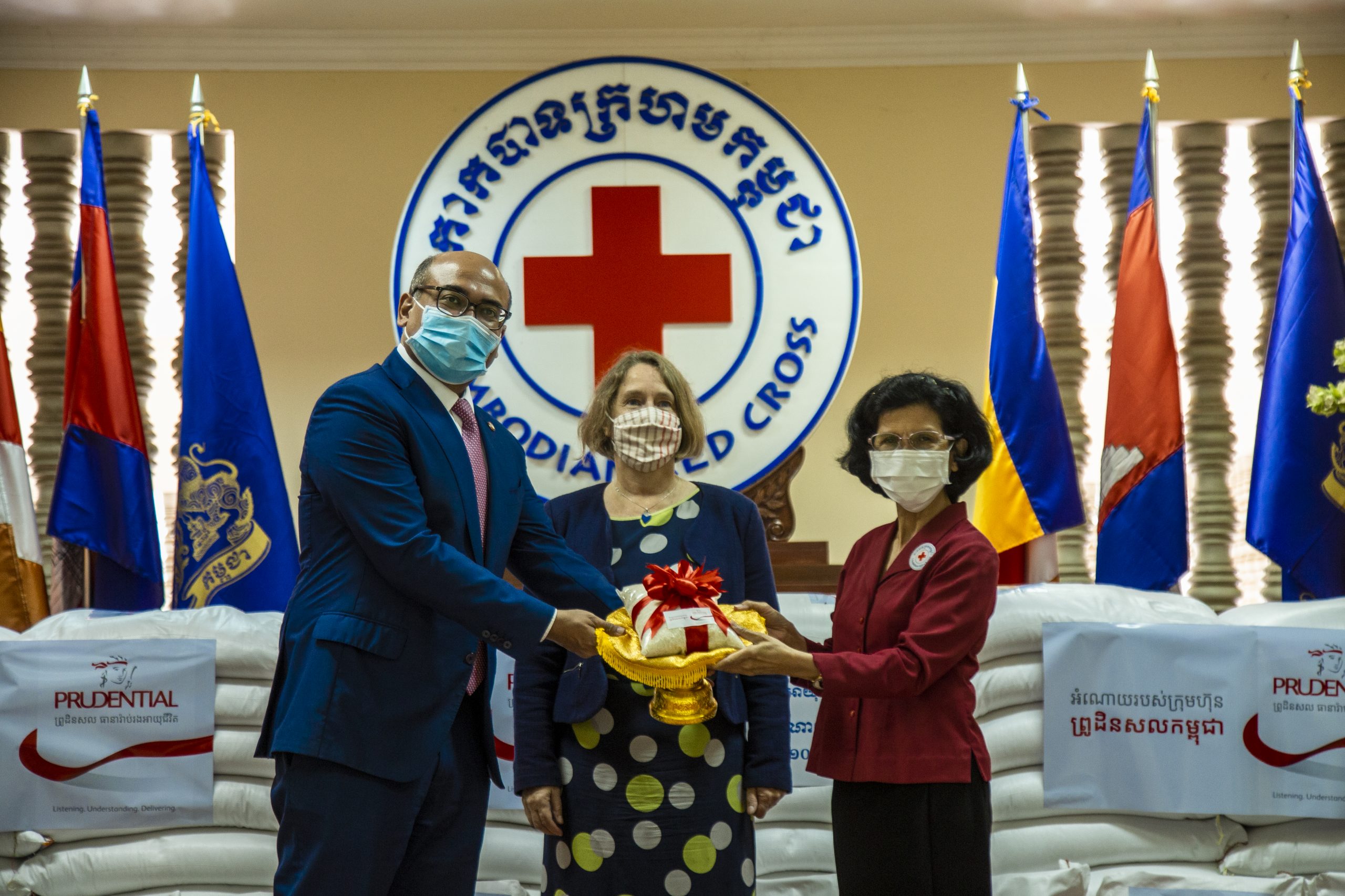 ភ្នំពេញ៖ ក្រុមហ៊ុនព្រូដិនសលកម្ពុជា បានឧបត្ថម្ភ អង្ករចំនួន ១០០ តោន ដល់កាកបាទក្រហមកម្ពុជា ដើម្បីជួយដល់ប្រជាពលរដ្ឋកម្ពុជាដែលរងគ្រោះដោយសារទឹកជំនន់ធ្ងន់ធ្ងរ ។ ពិធីប្រគល់បានធ្វើឡើងនៅឯកាកបាទក្រហមកម្ពុជា ក្រោមអធិបតីភាព លោកជំទាវ ពុំ ចន្ទីនី អគ្គលេខាធិការកាកបាទក្រហមកម្ពុជា លោកជំទាវ Tina Redshaw ឯកអគ្គរាជទូតអង់គ្លេសប្រចាំកម្ពុជា និង លោក Sanjay Chakrabarty អគ្គនាយកចាត់តាំងរបស់ក្រុមហ៊ុនព្រូដិនសលកម្ពុជា ។