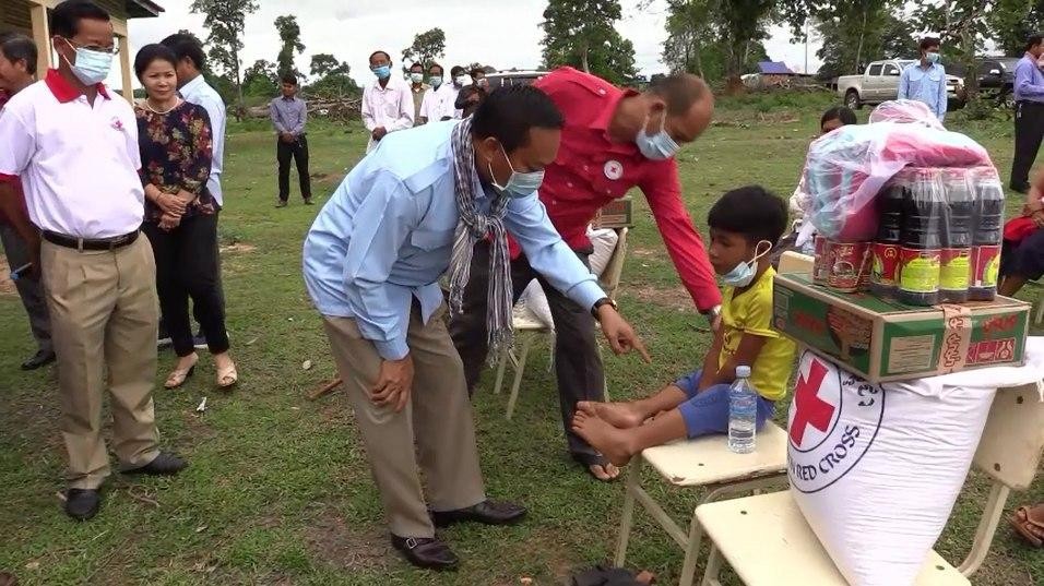 ប្រធានគណៈកម្មាធិការ សាខាកាកបាទក្រហមកម្ពុជា ខេត្តរតនគិរី នាំយកអំណោយមនុស្សធម៌ ចែកជូនប្រជាពលរដ្ឋក្រីក្រ ចាស់ជរា និងជនពិការជាង ៥០គ្រួសារ នៅស្រុកដាច់ស្រយាលមួយ ពីទីរួមខេត្តរតនគិរី