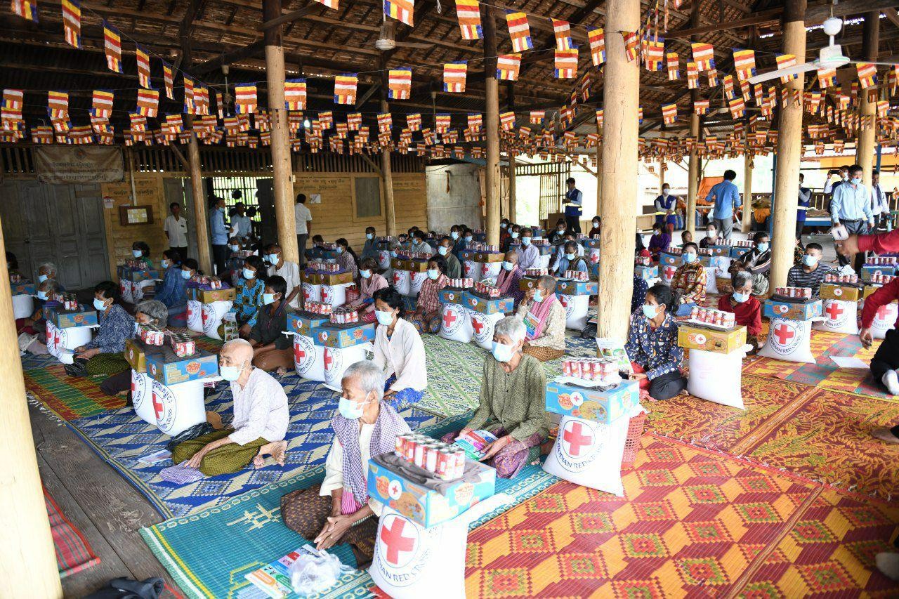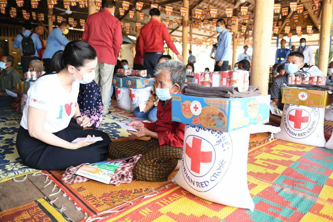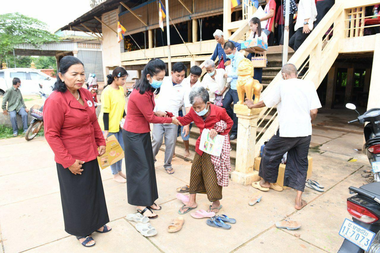 ខេត្តសៀមរាប៖ នាព្រឹកថ្ងៃទី១៥ ខែមិថុនា ឆ្នាំ២០២០ សម្ដេចកិត្តិព្រឹទ្ធបណ្ឌិត ប៊ុន រ៉ានី ហ៊ុនសែន ប្រធានកាកបាទក្រហមកម្ពុជា បានចាត់លោកជំទាវ ទាង អេង ទៀសីហា អនុប្រធានគណៈកម្មាធិការសាខាកាកបាទក្រហមកម្ពុជា ខេត្តសៀមរាប អញ្ជើញជួបសំណេះសំណាលសួរសុខទុក្ខ និងនាំយកអំណោយមនុស្សធម៌ក្រុមគ្រួសារងាយរងគ្រោះ មានចាស់ជរាគ្មានទីពឹង កុមារកំព្រា ស្ត្រីមេម៉ាយក្រីក្រមានកូនច្រើ អ្នកផ្ទុកមេរោគអេដស៍ និងជនពិការទីទ័លក្រ ចំនួន ៦០គ្រួសា នៅស្រុកក្រឡាញ់ ខេត្តសៀមរាប។