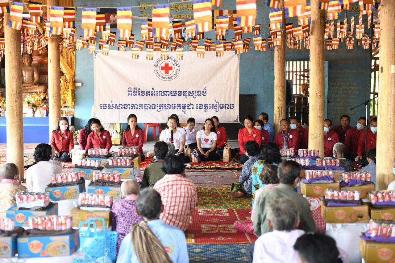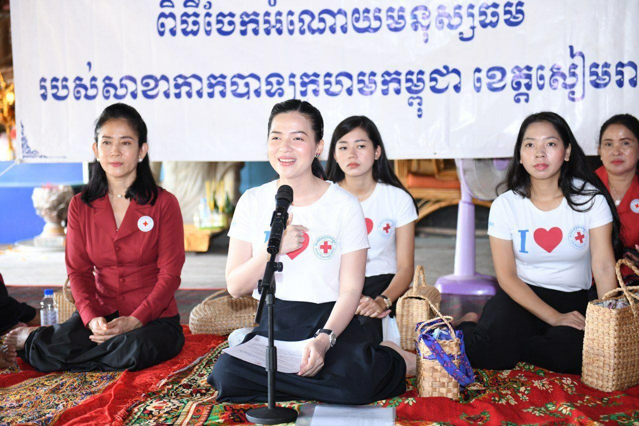 មានប្រសាសន៍នាឱកាសនោះ លោកជំទាវអនុប្រធានគណៈកម្មាធិការសាខាកាកបាទក្រហមកម្ពុជា ខេត្តសៀមរាប បានពាំនាំនូវការផ្ដាំផ្ញើសួរសុខទុក្ខពីសម្ដេចកិត្តិព្រឹទ្ធបណ្ឌិត ប៊ុន រ៉ានី ហ៊ុនសែន ប្រធានកាកបាទក្រហមកម្ពុជា និងឯកឧត្តម ទៀ សីហា ប្រធានគណៈកម្មាធិកាកសាខា ដែលជានិច្ចកាលសម្ដេចតែងតែយកចិត្តទុកដាក់ គិតគូរខ្ពស់បំផុតចំពោះសុខទុក្ខប្រជាពលរដ្ឋគ្រប់រូប មិនប្រកាន់វណ្ណៈ ពណ៌សម្បុរ ជំនឿសាសនា ឬនិន្នាការនយោបាយណាមួយឡើយ។
