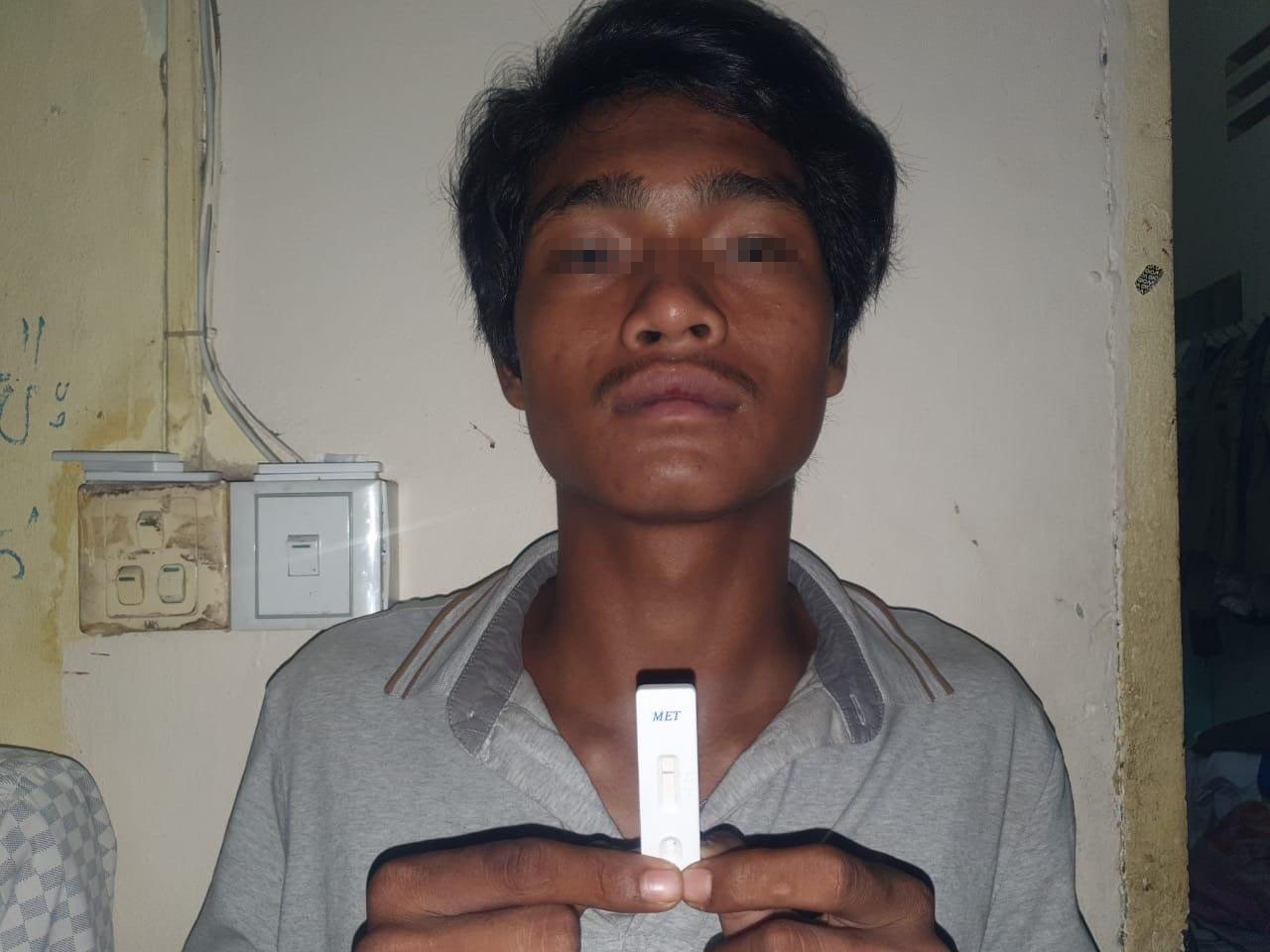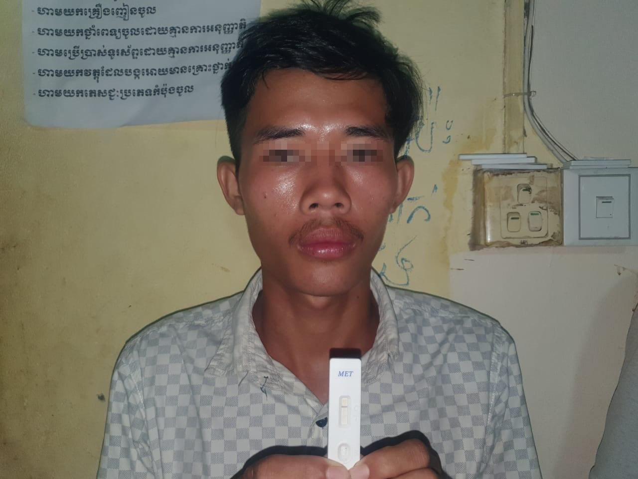 ទី៣-ឈ្មោះ នឿន ផានិត ភេទ ប្រុស អាយុ ១៩ ឆ្នាំជនជាតិ ខ្មែរ មុខរបរកម្មករសំណង់ស្នាក់នៅ ភូមិទួលចាន់សង្កាត់ព្រែកឯង ខណ្ឌច្បារអំពៅ រាជធានីភ្នំពេញ។ វត្ថុតាងដកហូតក្រាមសថ្លា ០១កញ្ចប់តូច។
