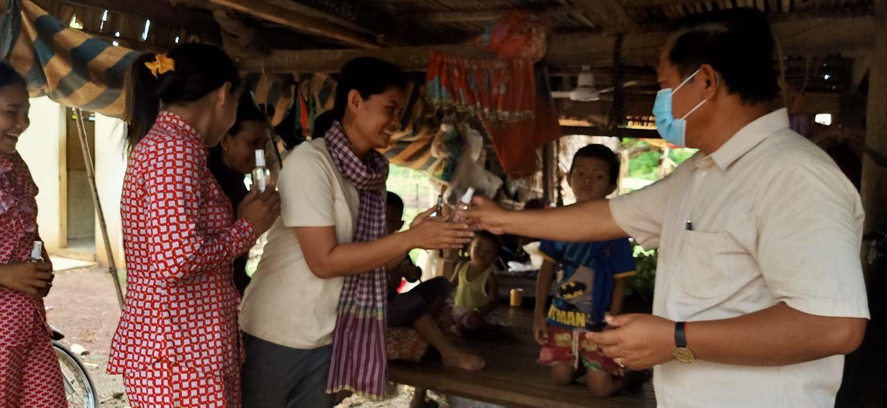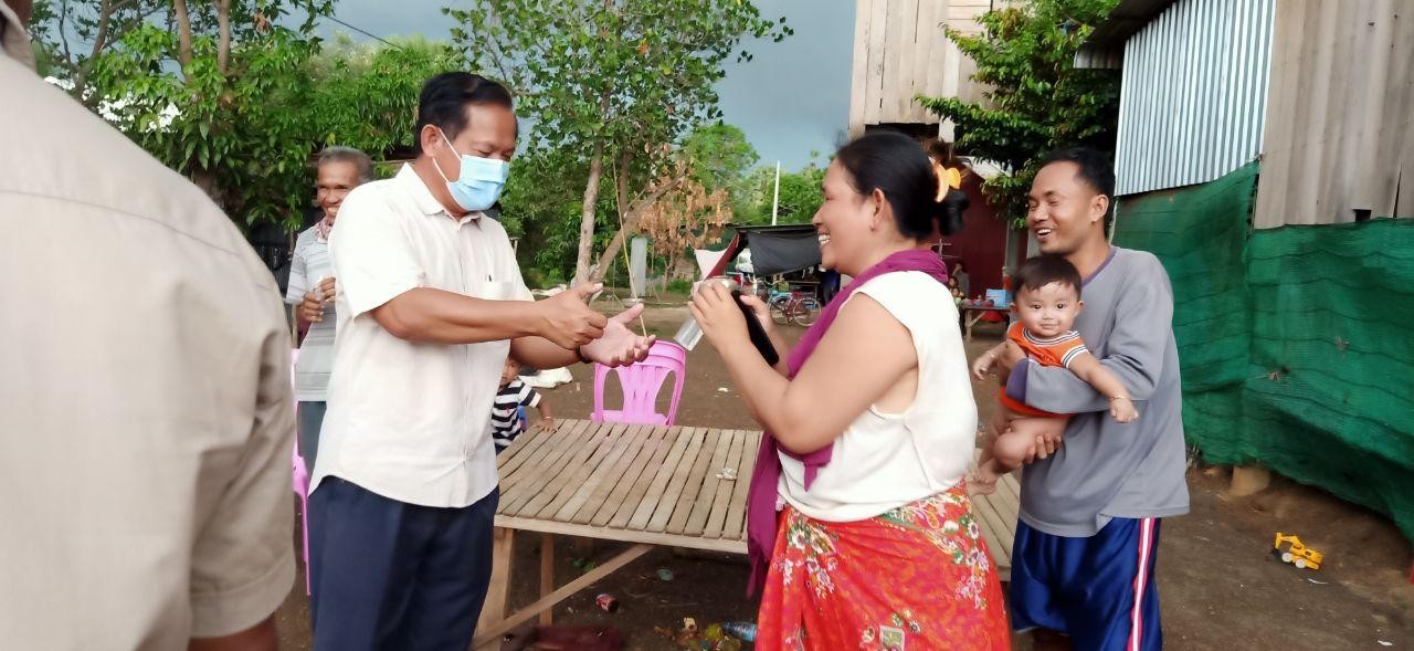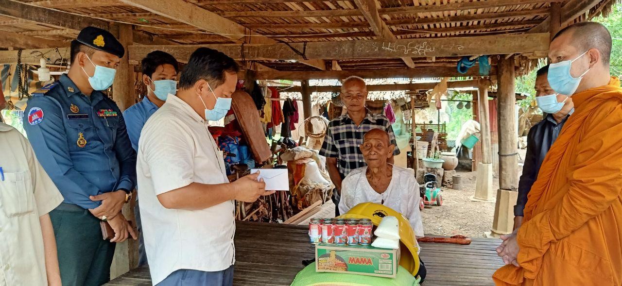 កំពង់ធំ៖ នារសៀលថ្ងៃទី១៤ ខែមិថុនា ឆ្នាំ២០២០ លោក ហាក់ ម៉ុងហួត អភិបាលនៃគណៈអភិបាលស្រុកតាំងគោក និងសហការីបានអញ្ជើញចុះសួរសុខទុក្ខបងប្អូនប្រជាពលរដ្ឋតាមខ្នងផ្ទះ ផ្សព្វផ្សាយពីការការពារជំងឺកូវីដ១៩ និងចែកអំណោយដល់គ្រួសារក្រីក្រចំនួន៨គ្រួសារ ព្រមទាំងផ្តល់រទេះរុញដល់ជនពិការ ដែលនៅភូមិស្នួល ឃុំស្រឡៅ ស្រុកតាំងគោក ខេត្តកំពង់ធំ។