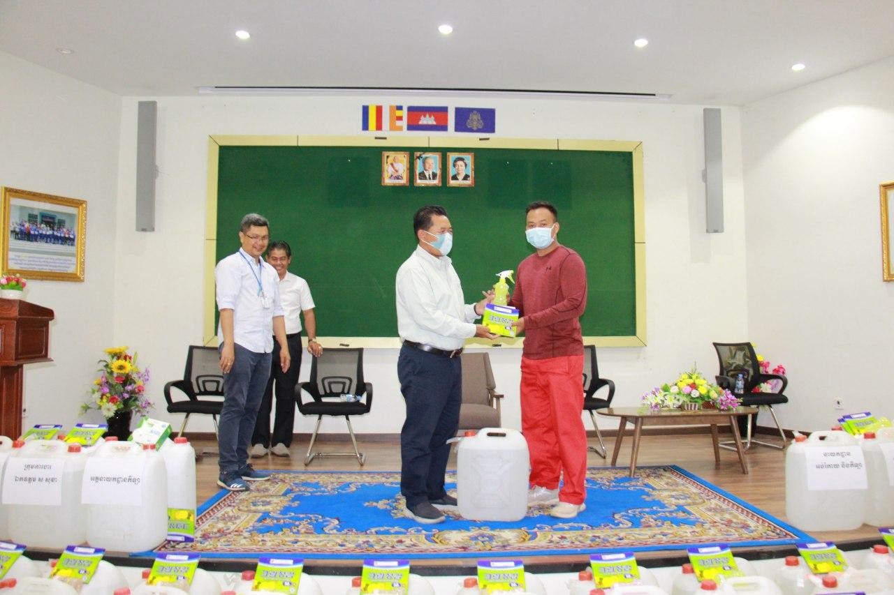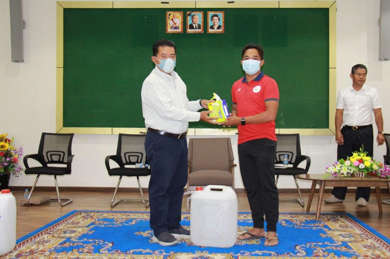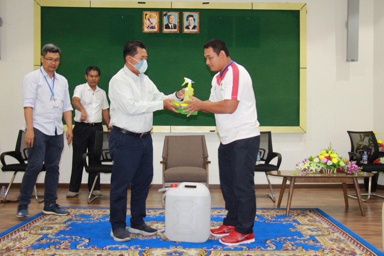 សូមបញ្ជាក់ថា សម្ភារប្រើប្រាស់ ដើម្បីចូលរួមទប់ស្កាត់ និងបង្កាការរីករាលដាលនៃជំងឺកូវីដ-១៩ ដែលអគ្គនាយកដ្ឋានកីឡា បានទទួលពីក្រុមហ៊ុន Chainman ofThe Korean Chamber in Cambodia សរុបជាថវិកា ចំនួន ៧០០០ដុល្លាអាម៉េរិក រួមមាន៖ ១.អាល់កុល ចំនួន ១២០ប៊ីដុង ស្មើនឹងចំនួន ៣៦០០លីត្រ , ២.ដប់សម្រាប់ដាក់អាកុល ចំនួន ៥០ដប , ៣.ម៉ាស់ការពារ ចំនួន ១០០០ម៉ាស់ និង៤.ស្រោមដៃការពារ ចំនួន១០០ ៕ធ.ដ