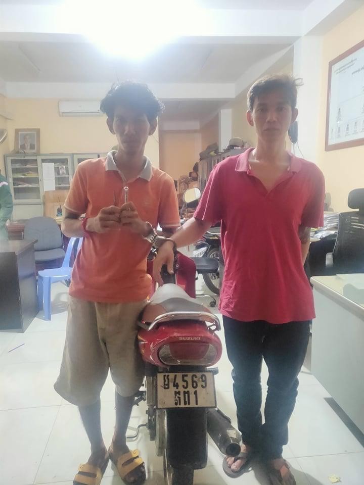 ជនសង្ស័យ ២នាក់ ប៉ងលួចម៉ូតូ ស្រាប់តែកម្លាំងសមត្ថកិច្ចល្បាតខណ្ឌច្បារអំពៅប្រទះឃេីញចាប់ឃាត់ខ្លួន