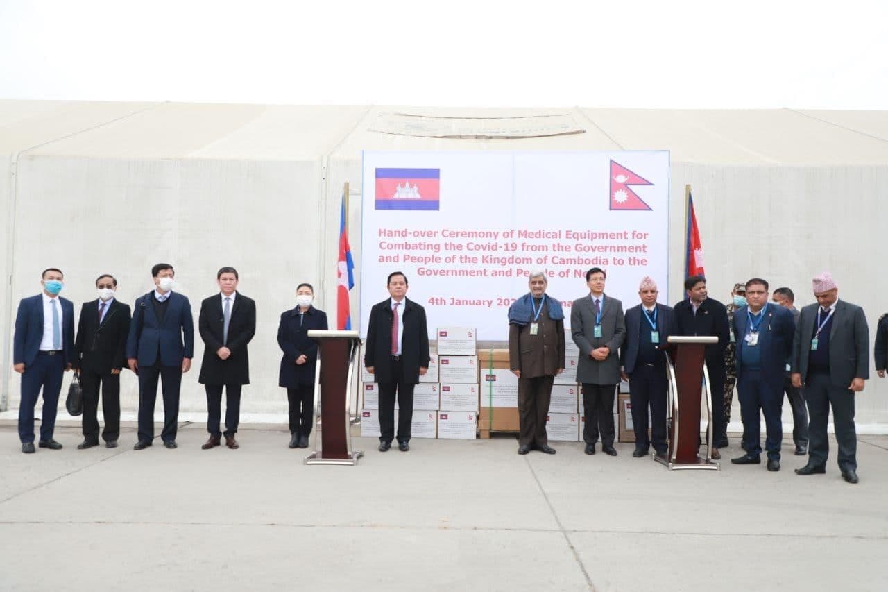 នេប៉ាល់ ជាប្រទេសទី៤ ដែលកម្ពុជាបានផ្តល់ជំនួយម៉ាស់ និងបរិក្ខារសម្រាប់ប្រយុទ្ធប្រឆាំងជំងឺកូវីដ១៩។ ឆ្នាំ២០២០ រាជរដ្ឋាភិបាលកម្ពុជាបានផ្តល់នូវអំណោយជាម៉ាស និងបរិក្ខារពេទ្យជូនដល់ឡាវ មីយ៉ាន់ម៉ា និងទីម័រឡេស្ត។