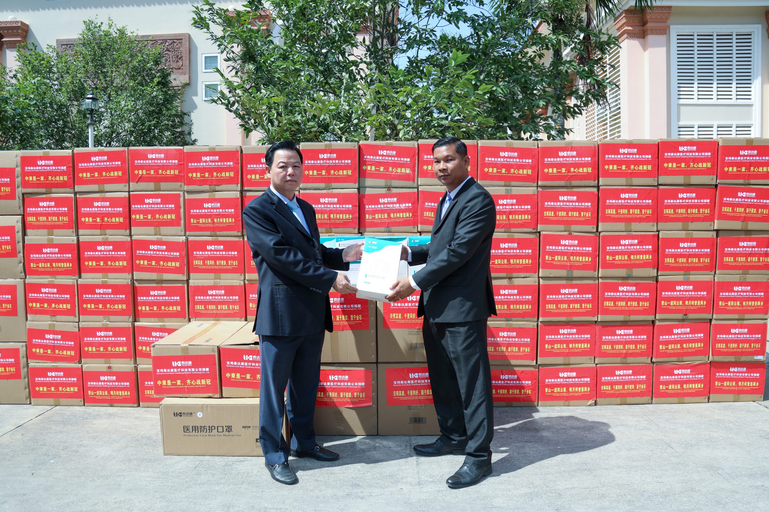 ក្រុមហ៊ុន Baoji Taidakang Medical Technology Co.,Ltd បានផ្តល់អំណោយម៉ាស់ចំនួន ១.៤៣២.៥០០ម៉ាស់ ជូនដល់ក្រសួងការបរទេសកម្ពុជា ដើម្បីប្រយុទ្ធប្រឆាំងជំងឺកូវីដ-១៩