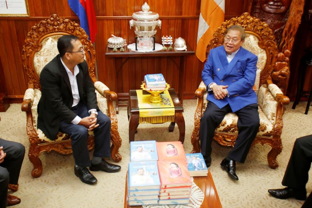 ឯកឧត្តម ខៀវ កាញារីទ្ធ ទទួលអំណោយពីក្រុមហ៊ុនដំរី ផលិតនំស្រួយ ចាហ៊ួយ និងទឹកដោះគោ និងទទួលសៀវភៅ ប្រវត្តិសាស្រ្ត ពីអ្នកនិពន្ធ ពៅ សុខ