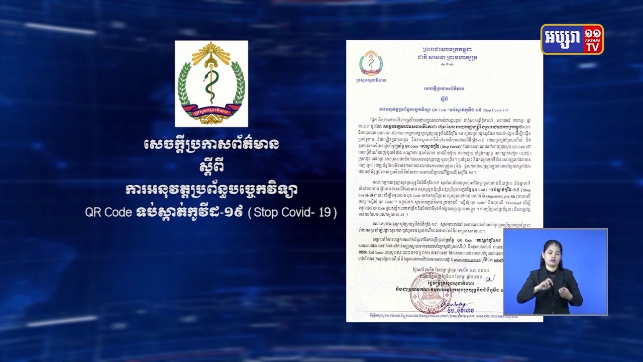ក្រសួងសុខាភិបាល ពន្យល់ពីការអនុវត្តប្រព័ន្ធបច្ចេកវិទ្យា QR Code «ទប់ស្កាត់កូវីដ១៩ Stop Covid-19» នៅពេលចេញ-ចូលទីតាំងផ្សេងៗ (មានវីដេអូ)អប្សរាព្រឹកនេះអត្ថបទដោយ៖ឆាយ រត្ថា ឆាយ រត្ថាលោក ឆាយ រត្ថា ជាបុគ្គលិកផ្នែកព័ត៌មានវិទ្យា នៃអគ្គនាយកដ្ឋានវិទ្យុ និងទូរទស្សន៍ អប្សរាអត្ថបទមុនអត្ថបទបន្ទាប់