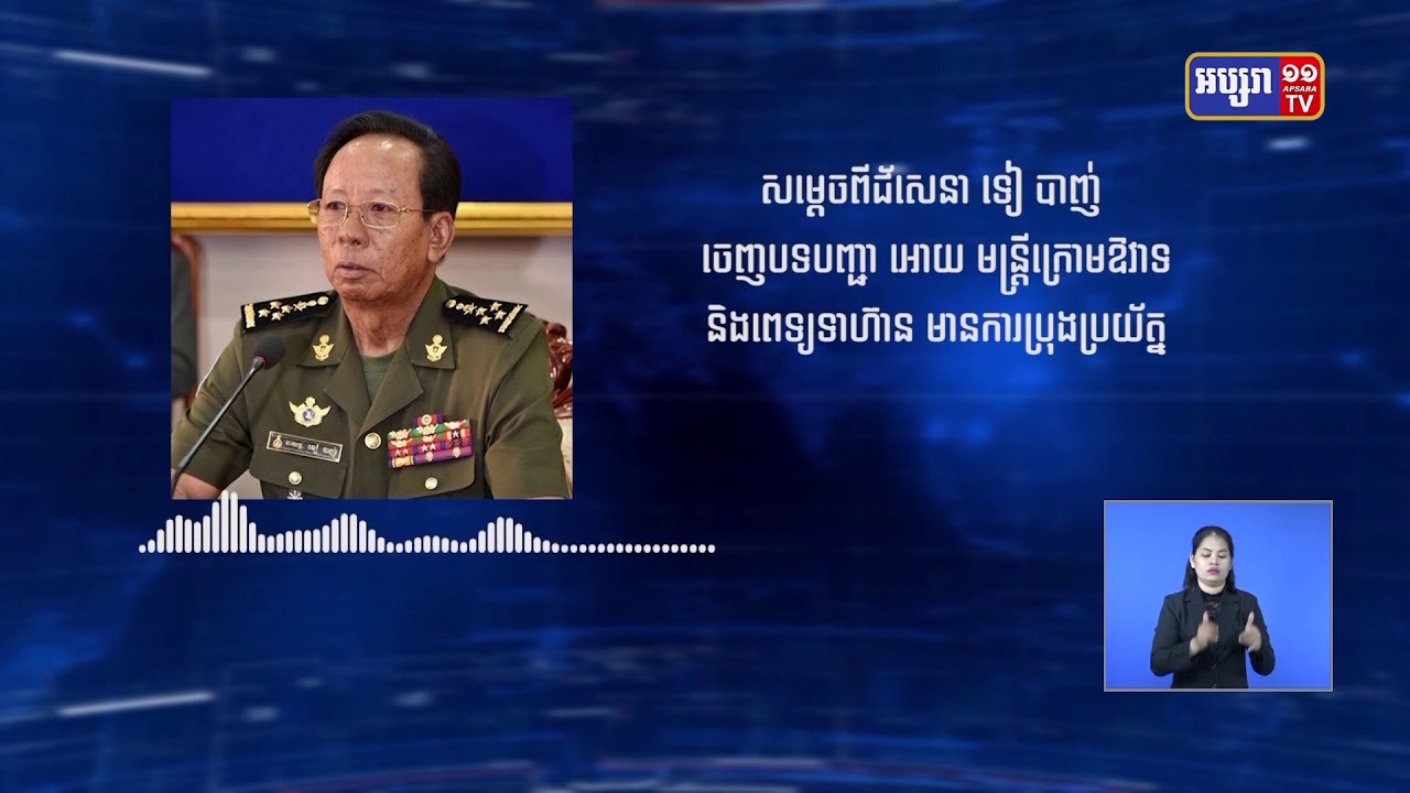 សម្តេចពិជ័យសេនា ទៀ បាញ់ ចេញបទបញ្ជា អោយពេទ្យទាហ៊ាន និងមន្ត្រី ក្រោមឱវាទ មានការប្រុងប្រយ័ត្នខ្ពស់ ខណៈរកឃើញគ្រូបង្រៀនម្នាក់មានផ្ទុកមេរោគកូវីដ ១៩ (មានវីដេអូ)អប្សរាព្រឹកនេះអត្ថបទដោយ៖ឆាយ រត្ថា ឆាយ រត្ថាលោក ឆាយ រត្ថា ជាបុគ្គលិកផ្នែកព័ត៌មានវិទ្យា នៃអគ្គនាយកដ្ឋានវិទ្យុ និងទូរទស្សន៍ អប្សរាអត្ថបទមុនអត្ថបទបន្ទាប់