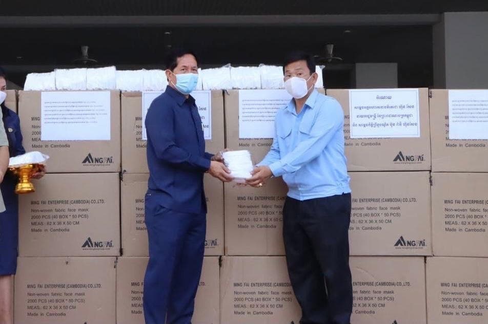 ជាក់ស្តែងថ្ងៃទី៣០ ខែមីនា ឆ្នាំ២០២១នេះ ឯកឧត្តម ឃួង ស្រេង អភិបាលរាជធានីភ្នំពេញ បានផ្តល់ធុងបាញ់ថ្នាំសម្លាប់មេរោគ និងទឹកថ្នាំ ព្រមទាំងថវិកាមួយចំនួនជូនដល់ខណ្ឌទាំង១៤ ក្នុងរាជធានីភ្នំពេញ ដើម្បីធ្វើសកម្មភាព ក្នុងការបង្ការនិងទប់ស្កាត់នូវជំងឺកូវីដ-១៩ ក្នុងព្រឹត្តិការណ៍សហគមន៍២០កុម្ភៈនេះ ។