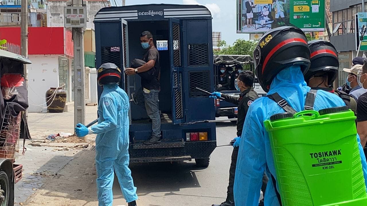 ភ្នំពេញៈ កម្លាំងអាវុធហត្ថរាជធានីភ្នំពេញឃាត់ខ្លួនអ្នករត់ម៉ូតូកង់បី មិនគោរពតាមវិធានការបិទខ្ទប់របស់រាជរដ្ឋាភិបាល ដោយចេញក្រៅលំនៅដ្ឋាន និងធ្វើដំណើរលើដងផ្លូវគ្មានលិខិតអនុញ្ញាត។ ការឃាត់ខ្លួននេះ បានធ្វើឡើងកាលពីថ្ងៃទី២២ ខែមេសា ឆ្នាំ២០២១ នៅតាមបណ្តាយផ្លូវសុធារស ភូមិ៣ សង្កាត់ទន្លេបាសាក់ ខណ្ឌចំការមន រាជធានីភ្នំពេញ។