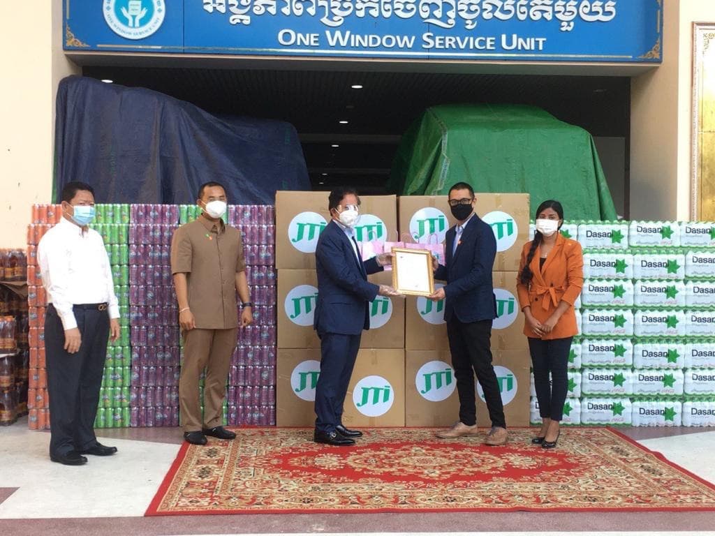 អភិបាលរាជធានីភ្នំពេញ ទទួលបានអំណោយពីក្រុមហ៊ុនJ T I ភ្លាម បន្តយកទៅចែកជូនដល់កងកម្លាំងដែលកំពុងឈរជើង នៅគោលដៅបិទខ្ទប់ភ្លាមៗដែរ