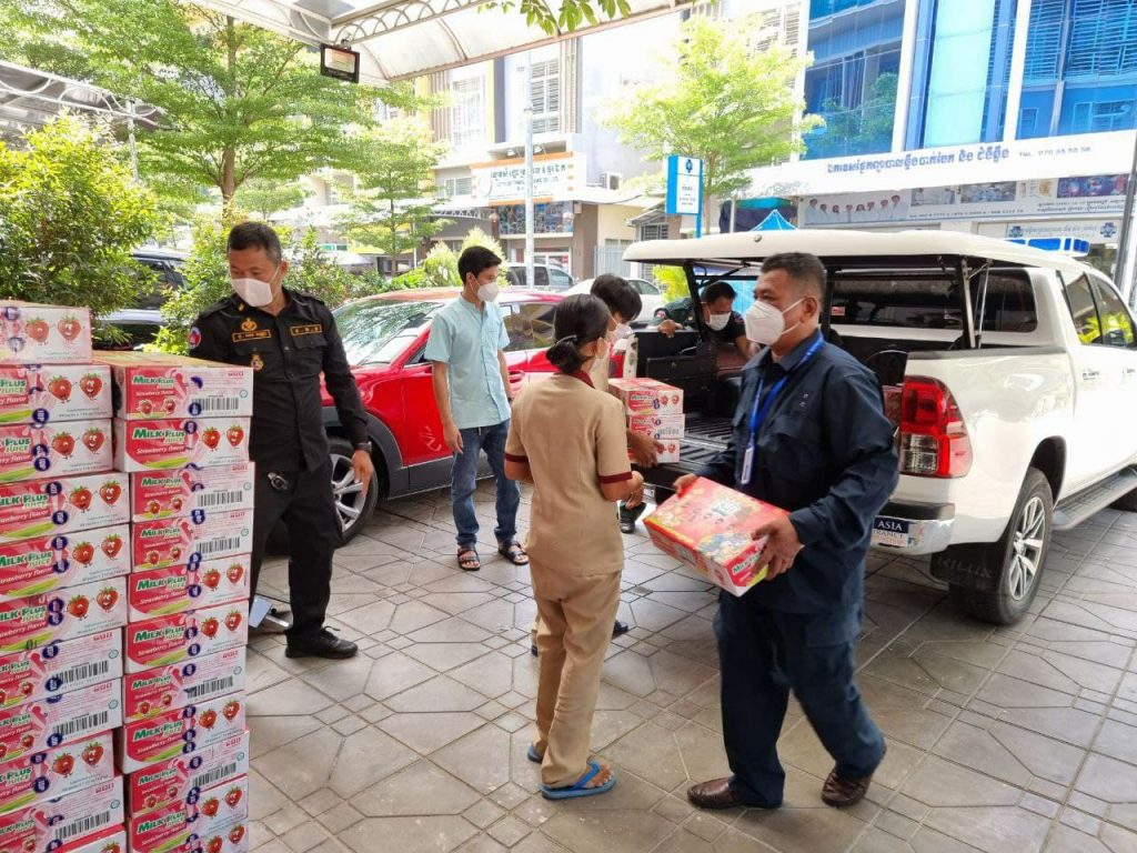 លោកជំទាវ ម៉ែន សំអ៉ីន ទីប្រឹក្សា ក្រសួងទំនាក់ទំនងជាមួយរដ្ឋសភា-ព្រឹទ្ធសភា និងអធិការកិច្ច បានដឹកនាំក្រុមការងារ បាននាំយកអំណោយជាទឹកដោះគោ របស់លោកជំទាវកិត្តិសង្គហបណ្ឌិត ម៉ែន សំអន ប្រគល់ជូនមន្ទីរពេទ្យចំនួន ០៥នៅរាជធានីភ្នំពេញ នាព្រឹកថ្ងៃអាទិត្យ ៦រោច ខែពិសាខ ឆ្នាំឆ្លូវ ត្រីស័ក ព.ស.២៥៦៥ ត្រូវនឹងថ្ងៃទី ០២ ខែឧសភា ឆ្នាំ២០២១ ។
