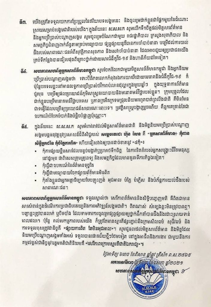 - កុំការផ្សាយខ្លឹមសារដែលបន្ទច់បង្អាក់ឬប្រមាថទឹកចិត្ត នៃការខិតខំរបស់អ្នកសង្គ្រោះជីវិតមនុស្ស នៅជួរមុខ ជាពិសេសក្រុមគ្រូពេទ្យ និងសមត្ថកិច្ច។