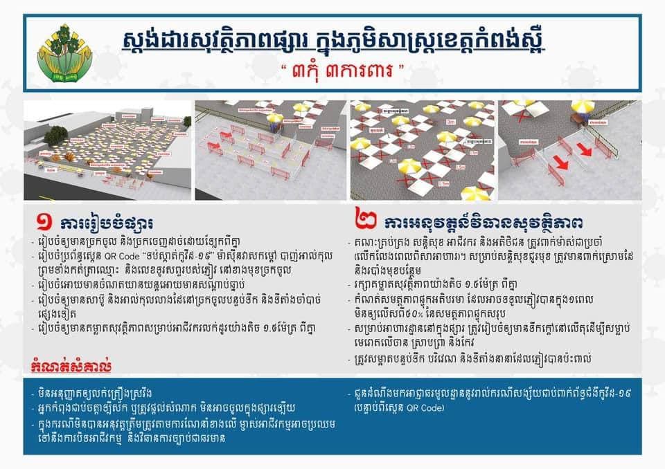 សេចក្តីណែនាំស្តីពីស្តង់ដារផ្សារសុវត្ថិភាពក្នុងភូមិសាស្ត្រខេត្តកំពង់ស្ពឺOne-Minuteអត្ថបទដោយ៖AMS OneMinute ០៣ ឧសភា ២០២១ AMS OneMinuteអត្ថបទមុនអត្ថបទបន្ទាប់