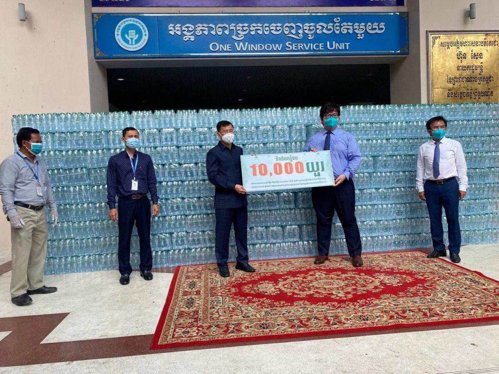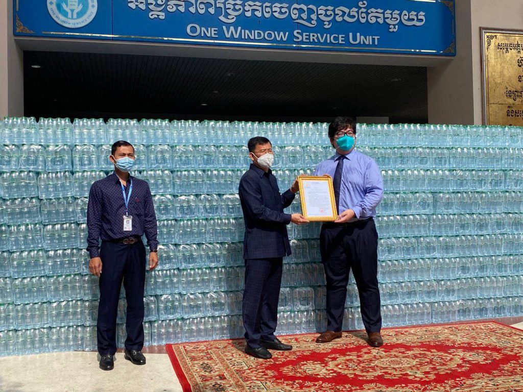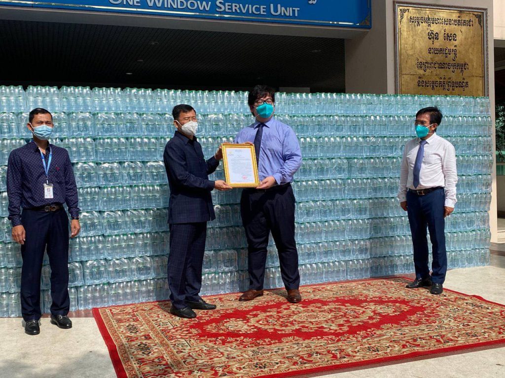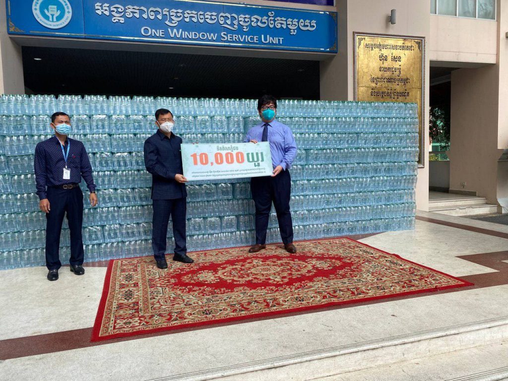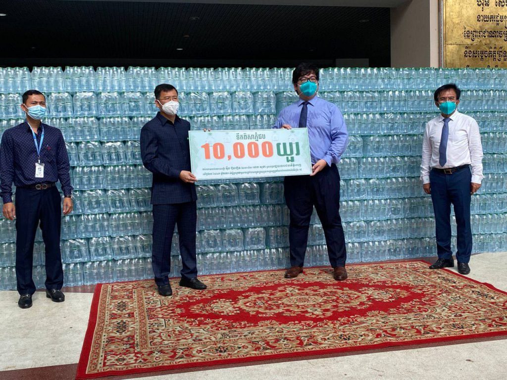 លោកឧកញ៉ា អុឹង ប៊ុនហ៊ូវ ឧបត្ថម្ភទឹកបរិសុទ្ធ ចំនួន ១០,០០០យួរ ជូនរដ្ឋបាលរាជធានី ដើម្បីឧបត្ថម្ភដល់កងកម្លាំង និងជួយទ្រទ្រង់ជីវភាពពលរដ្ឋរងផលប៉ះពាល់ ពីកូវីដ-១៩