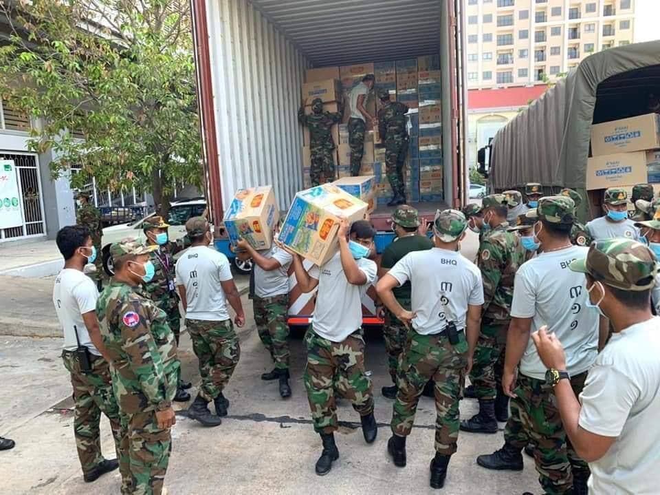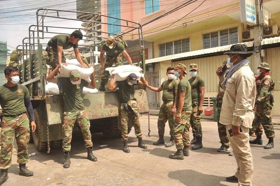 បញ្ជាការដ្ឋានអង្គរក្ស បន្តប្រើប្រាស់កម្លាំងដឹកជញ្ជូនស្បៀង របស់សម្តេចតេជោ និងសម្តេចកិត្តិព្រឹទ្ធបណ្ឌិត ចែកជូនប្រជាពលរដ្ឋនៅតំបន់បិទខ្ទប់