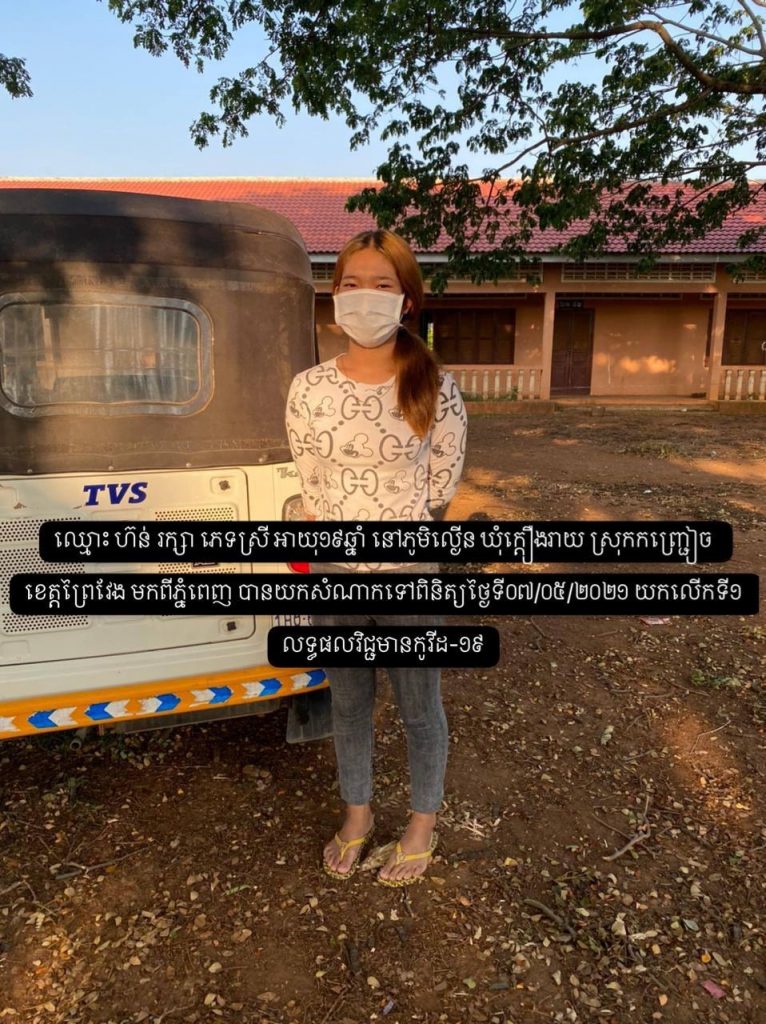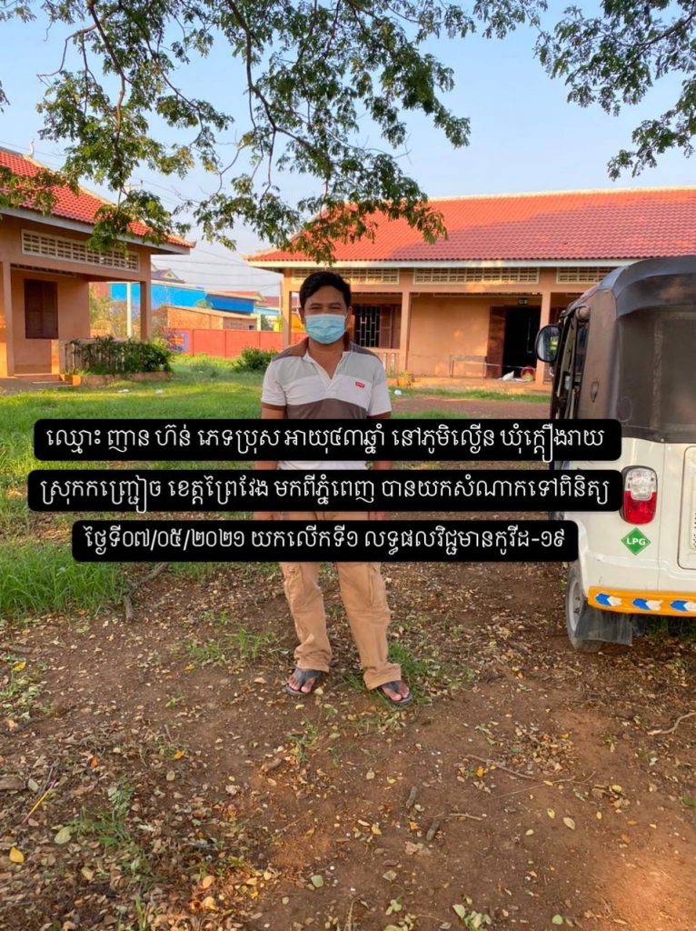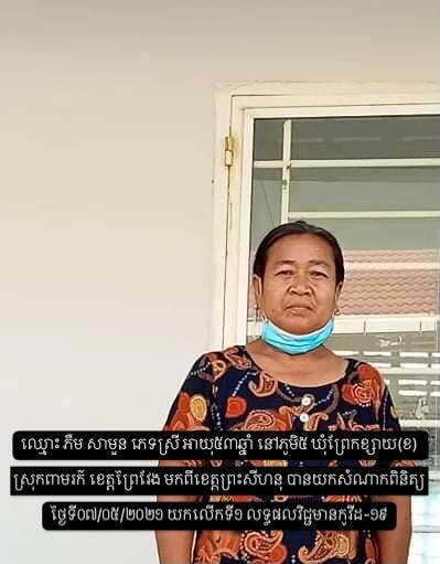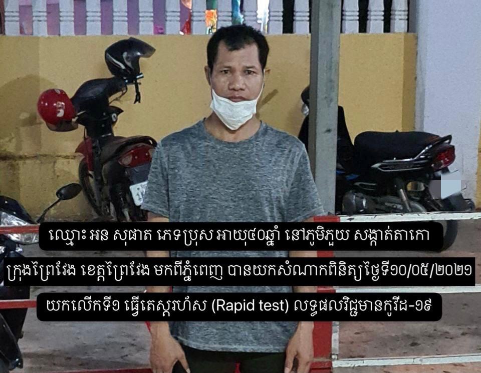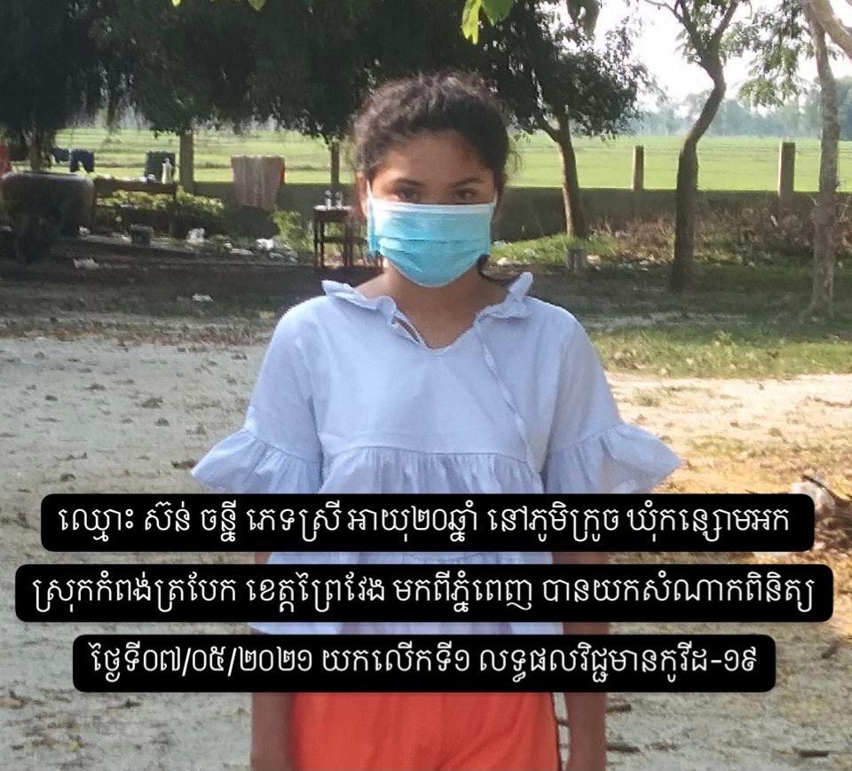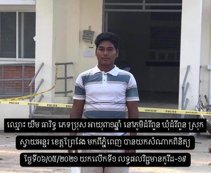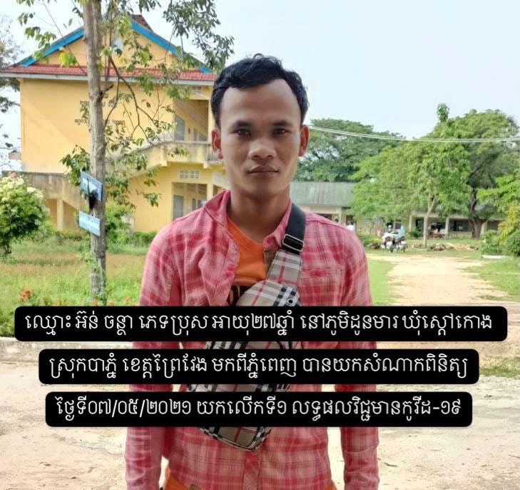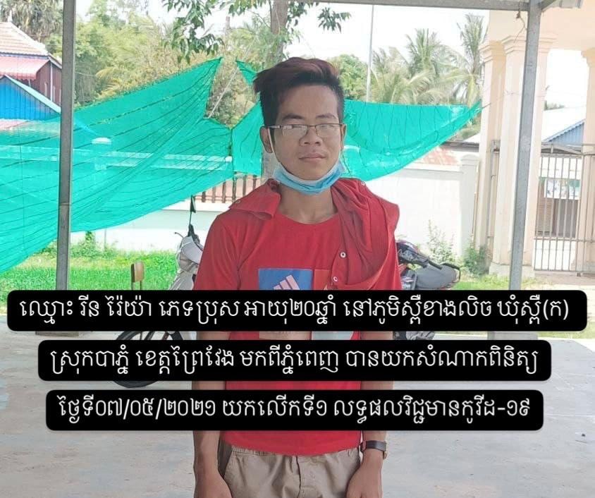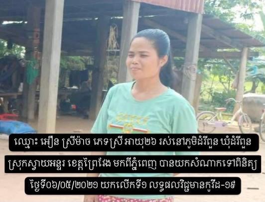 អត្តសញ្ញាណអ្នកឆ្លងជំងឺកូវីដ១៩ ចំនួន ១៥នាក់ ដែលរកឃើញនៅថ្ងៃទី១១ ឧសភា ២០២១ នៅខេត្តព្រៃវែង ជាអ្នកធ្វេីដំណេីរមកពីរាជធានីភ្នំពេញOne-Minuteអត្ថបទដោយ៖AMS OneMinute រដ្ឋបាលខេត្តព្រៃវែង AMS OneMinuteអត្ថបទមុនអត្ថបទបន្ទាប់