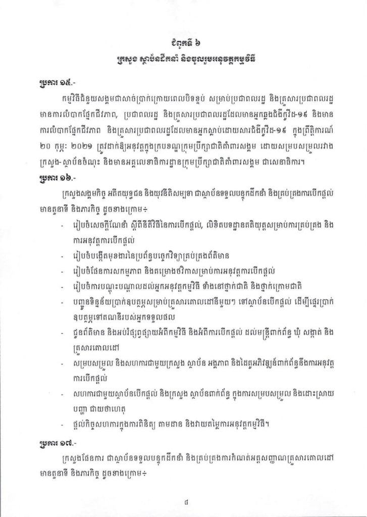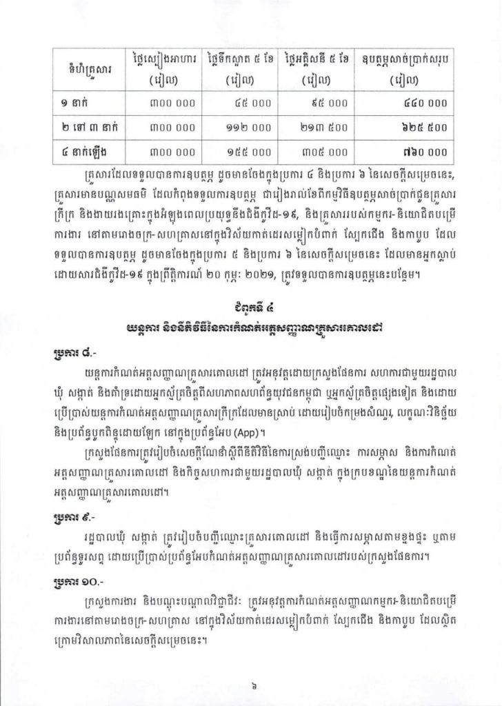 ក្រសួងសេដ្ឋកិច្ចចេញសេចក្តីសម្រេចស្តីពីយន្តការ និងនីតិវិធីនៃការអនុវត្តជំនួយសង្គមជាសាច់ប្រាក់ក្រោយពេលបិទខ្ទប់ សម្រាប់ពលរដ្ឋមានជីវភាពខ្វះខាត និងសម្រាប់គ្រួសារស្លាប់ និងឆ្លងជំងឺកូវីដ១៩
