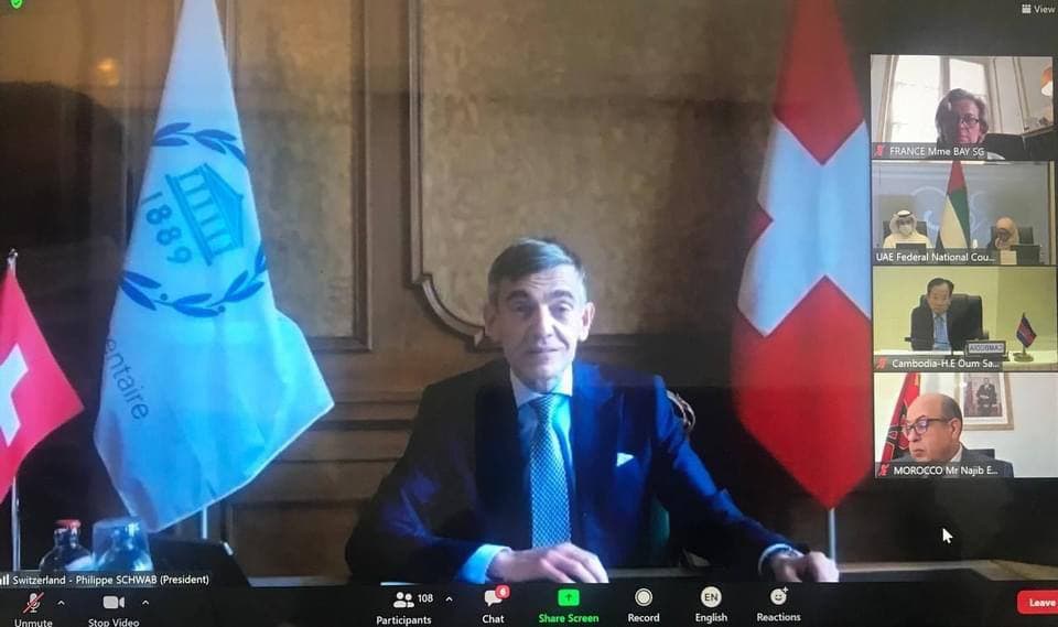 ភ្នំពេញ ៖ ឯកឧត្តម អ៊ុ សារឹទ្ធ អគ្គលេខាធិការព្រឹទ្ធសភា បានដឹកនាំគណៈប្រតិភូអគ្គលេខាធិការព្រឹទ្ធសភា និងរដ្ឋសភា នៃព្រះរាជាណាចក្រកម្ពុជា អញ្ជើញចូលរួមកិច្ចប្រជុំសមាគមអគ្គលេខាធិការសភា (ASGP) តាមរយៈប្រព័ន្ធវីដេអូ ផ្សាយចេញពីទីក្រុងហ្សឺណែវ ប្រទេសស្វីស ដែលមានអគ្គលេខាធិការ អគ្គលេខាធិការរងសភាជាសមាជិកសមាគមចូលរួមសរុបចំនួន១១០រូប នារសៀលថ្ងៃទី២៦ ខែឧសភា ឆ្នាំ២០២១ នៅសាលបណ្ណាល័យព្រឹទ្ធសភា ។