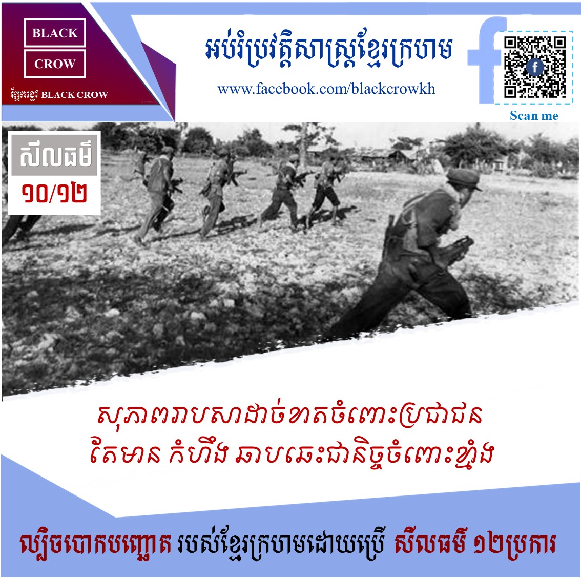 ១០/១២ នៃសីលធម៌បោកបញ្ឆោតរបស់ខ្មែរក្រហម “សុភាពរាបសាដាច់ខាតចំពោះប្រជាជន តែមាន កំហឹង ឆាបឆេះជានិច្ចចំពោះខ្មាំងដី”