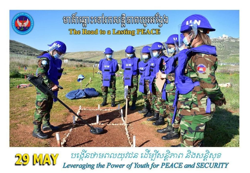 ភ្នំពេញៈ នៅថ្ងៃទី២៩ ខែឧសភានេះ គឺជាទិវាអន្តរជាតិ អ្នកថែរក្សាសន្តិភាព អង្គការសហប្រជាជាតិ(អ.ស.ប) ក្រោមប្រធានបទ “មាគ៌ាឆ្ពោះទៅរកសន្តិភាពយូរអង្វែង និងថាមពលយុវជន ដើម្បីសន្តិភាព និងសន្តិសុខ”។ ទិវារក្សាសន្តិភាព អ.ស.ប ដើម្បីរំលឹកដល់ការចូលរួមពីគ្រប់កងកម្លាំងយោធា នគរបាល និងបុគ្គលិកស៊ីវិលទាំងបុរស និងនារីក្នុងប្រតិបត្តិការ សន្តិភាព ហើយក៏ជាថ្ងៃប្រារព្ធពិធីគោរពវិញ្ញាណក្ខន្ធ វីរយុទ្ធជន យុទ្ធនារី ដែលបានពលីដើម្បីបុព្វហេតុសន្តិភាព ក្នុងបេសកកម្មចំនួន៧២ គិតចាប់ពីឆ្នាំ១៩៤៨។