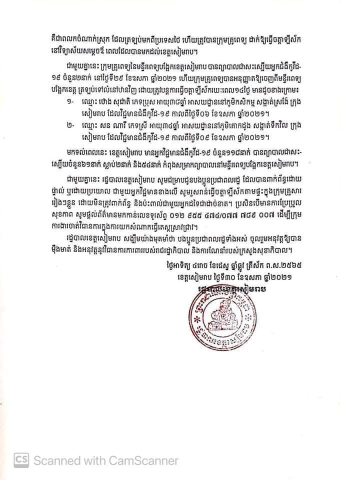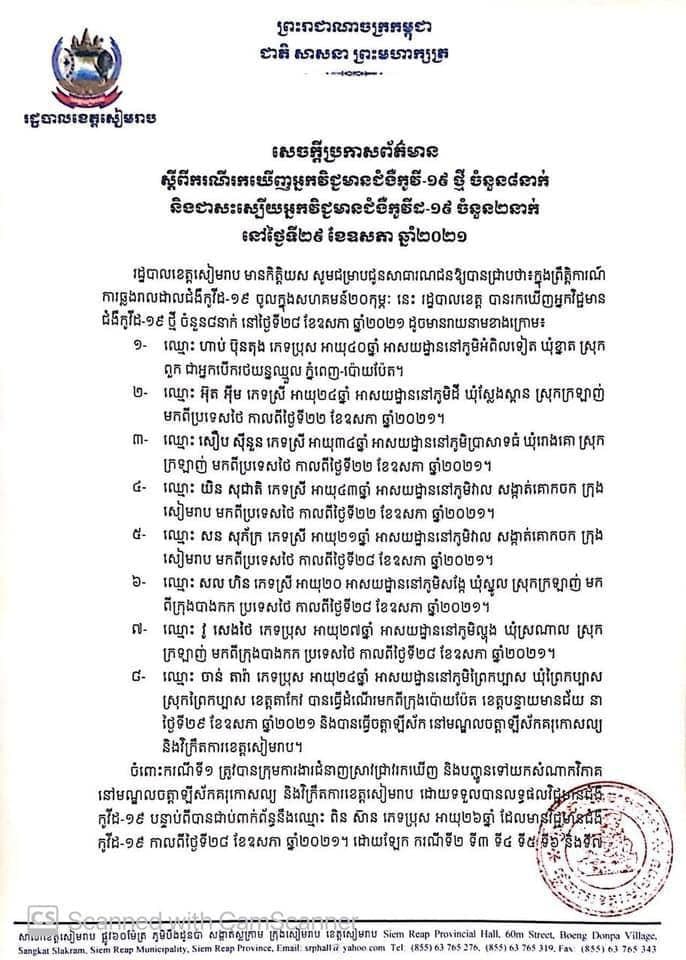 អត្តសញ្ញាណអ្នកវិជ្ជមានកូវី១៩ចំនួន ៨នាក់ និងជាសះស្បើយចំនួន ២នាក់ នៅខេត្តសៀមរាប ថ្ងៃទី២៩ ឧសភា ២០២១One-Minuteអត្ថបទដោយ៖AMS OneMinute AMS OneMinuteអត្ថបទមុនអត្ថបទបន្ទាប់