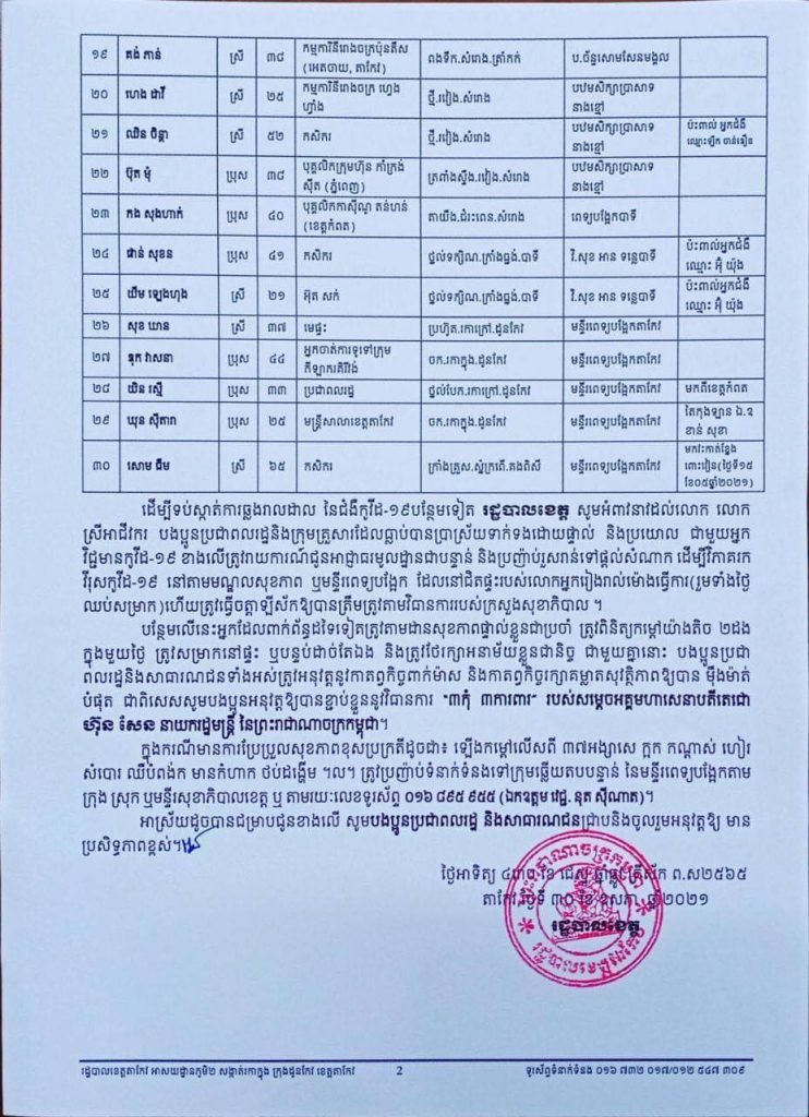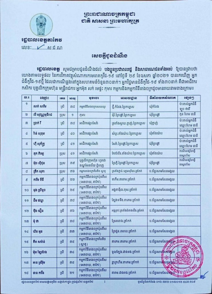 អត្តសញ្ញាណអ្នកវិជ្ជមានកូវីដ១៩ ចំនួន៣០នាក់ នៅខេត្តតាកែវOne-Minuteអត្ថបទដោយ៖AMS OneMinute ៣០ ឧសភា ២០២១ AMS OneMinuteអត្ថបទមុនអត្ថបទបន្ទាប់