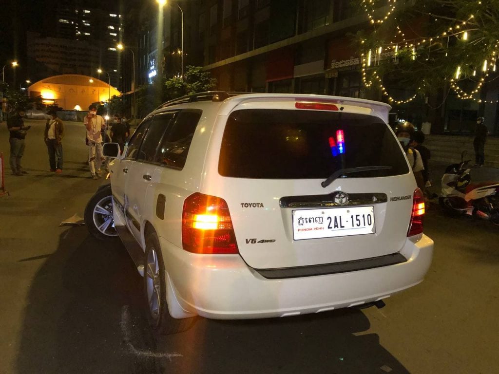 រថយន្តហាយឡែនឌ័រ បុកទ្រូងផ្លូវក្បែរស្ទុបអូរឬស្សី បណ្ដាលឲ្យរងការខូចខាតយ៉ាងដំណំ