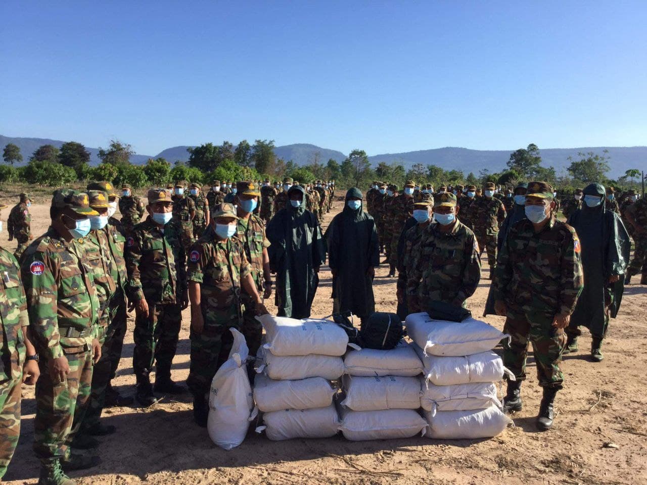 លោកឧត្តមសេនីយ៍ត្រី ច័ន្ទ សុខុន មេបញ្ជាការកងពលតូចអន្តរាគមន៍លេខ៨ ព្រមទាំងនាយទាហាន នាយទាហានរង និងពលទាហាន នៃអង្គភាពវរសេនាតូចទាំង៥ ចំណុះឲ្យទីបញ្ជាការកងពលតូចអន្តរាគមន៍លេខ៨ សូមគោរពថ្លែងអំណរអរគុណចំពោះសម្តេចតេជោហ៊ុនសែន នាយករដ្ឋមន្ត្រី និងសម្តេចកិត្តិព្រិទ្ធបណ្ឌិត ប៊ុន រ៉ានីហ៊ុនសែន ដែលជានិច្ចកាលសម្តេចទាំងពីរ តែងតែបានយកចិត្តទុកដាក់ និងគិតគូរខ្ពស់ចំពោះបញ្ហាសុខភាព ក៏ដូចជាការរស់នៅប្រចាំថ្ងៃ របស់បងប្អូនកងទ័ព និងគ្រួសារ ជាប់ជានិច្ច។ ការគោរពថ្លែងអំណរអរគុណនេះ ធ្វើឡើងនៅក្នុងពិធីប្រគល់អាវភ្លៀង ដែលជាអំណោយដ៏ថ្លៃថ្លារបស់សម្តេចទាំងទ្វេរ ក្រោយពីគោរពទង់ជាតិចប់ ក្នុងអង្គភាពទីបញ្ជាការវរសេនាតូចអន្តរាគមន៍លេខ៣៨៤ កាលពីព្រឹកថ្ងៃទី៣១ ខែឧសភា ឆ្នាំ២០២១។
